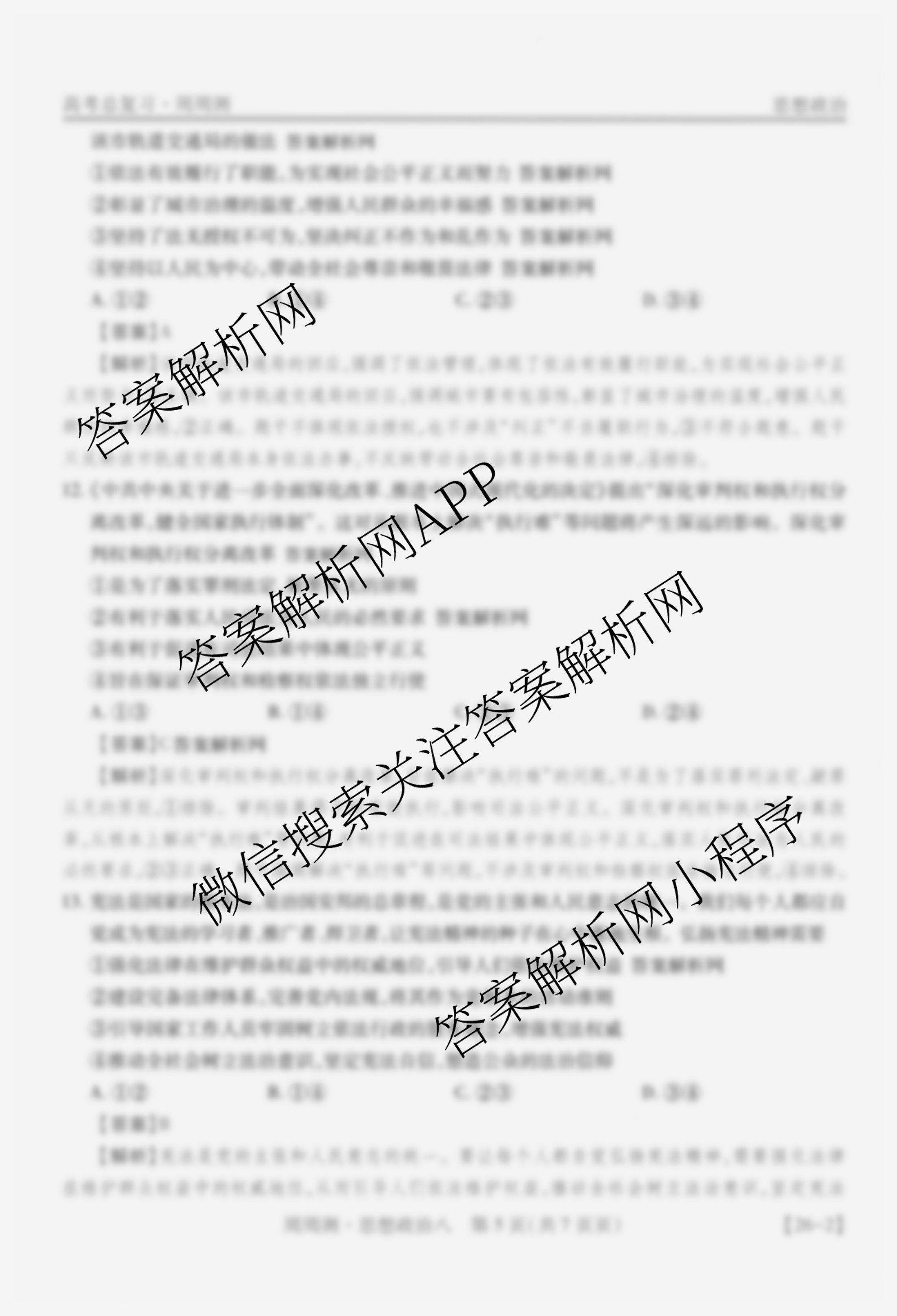 2026届智慧上进高考总复习必刷卷周周测(八)8政治答案