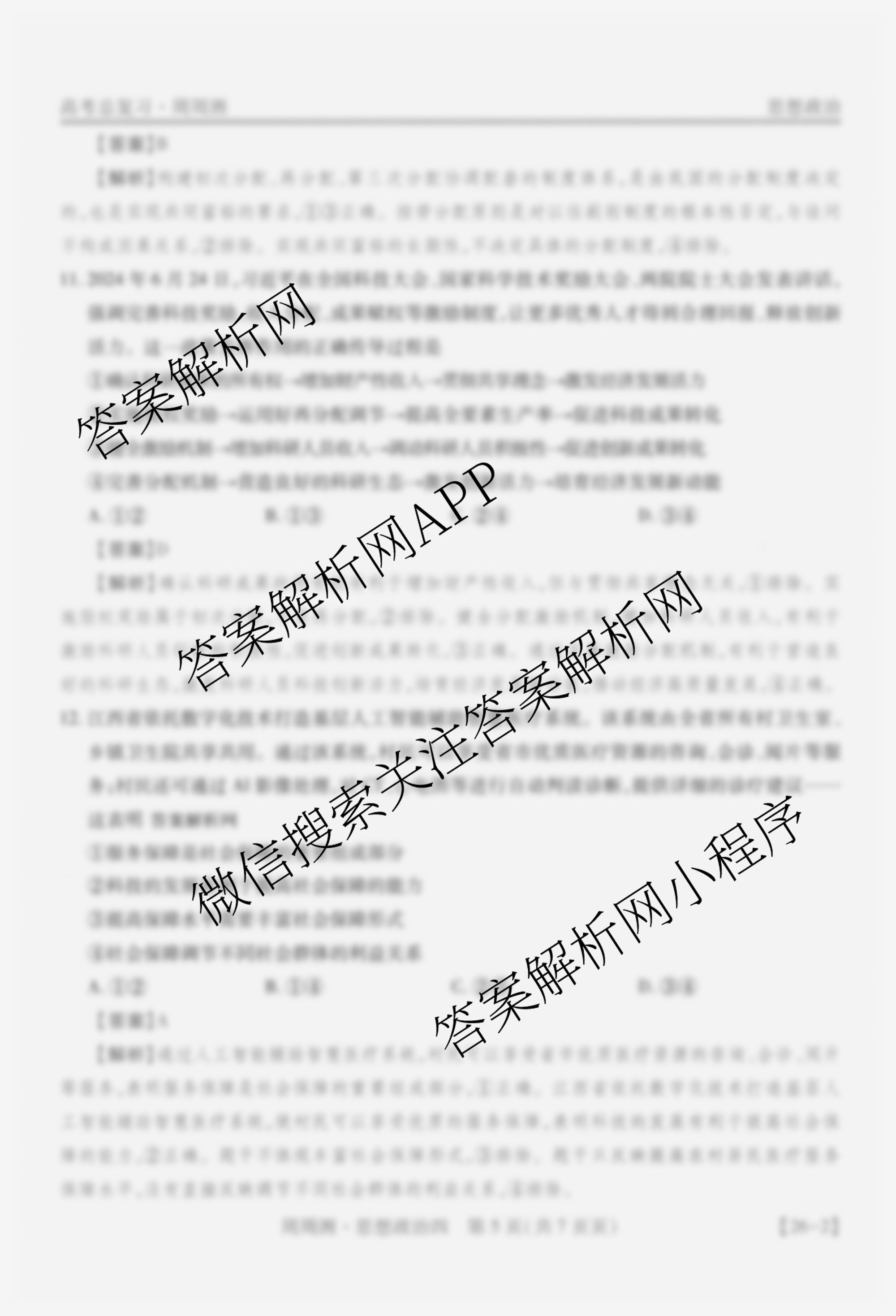 2026届智慧上进高考总复习必刷卷周周测(四)4政治答案