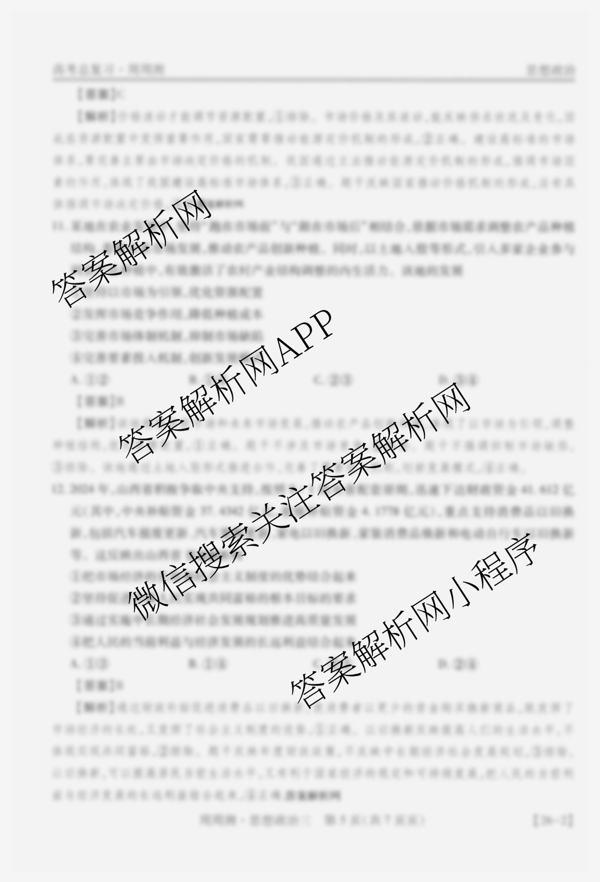 2026届智慧上进高考总复习必刷卷周周测(三)3政治答案