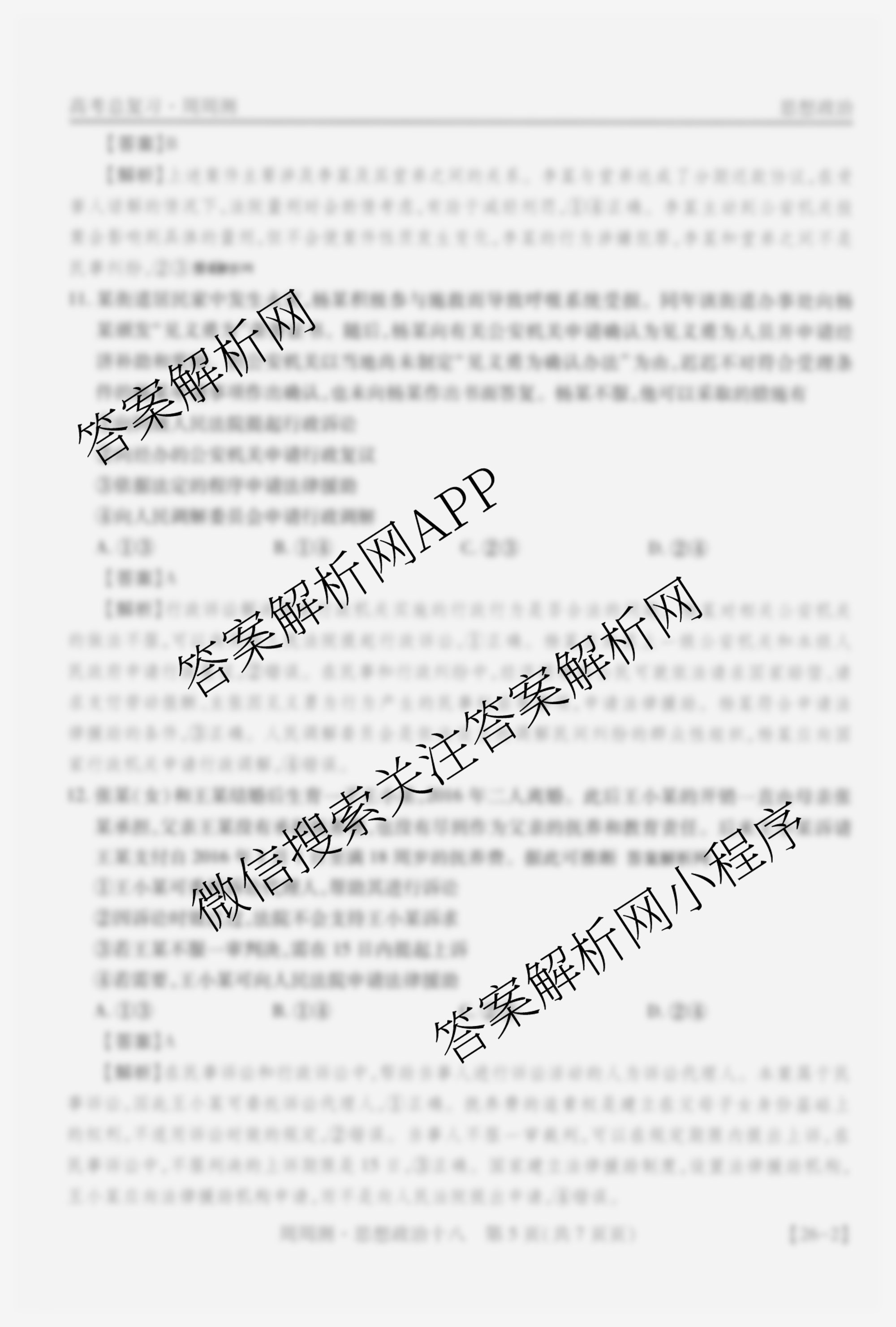 2026届智慧上进高考总复习必刷卷周周测(十八)18政治答案