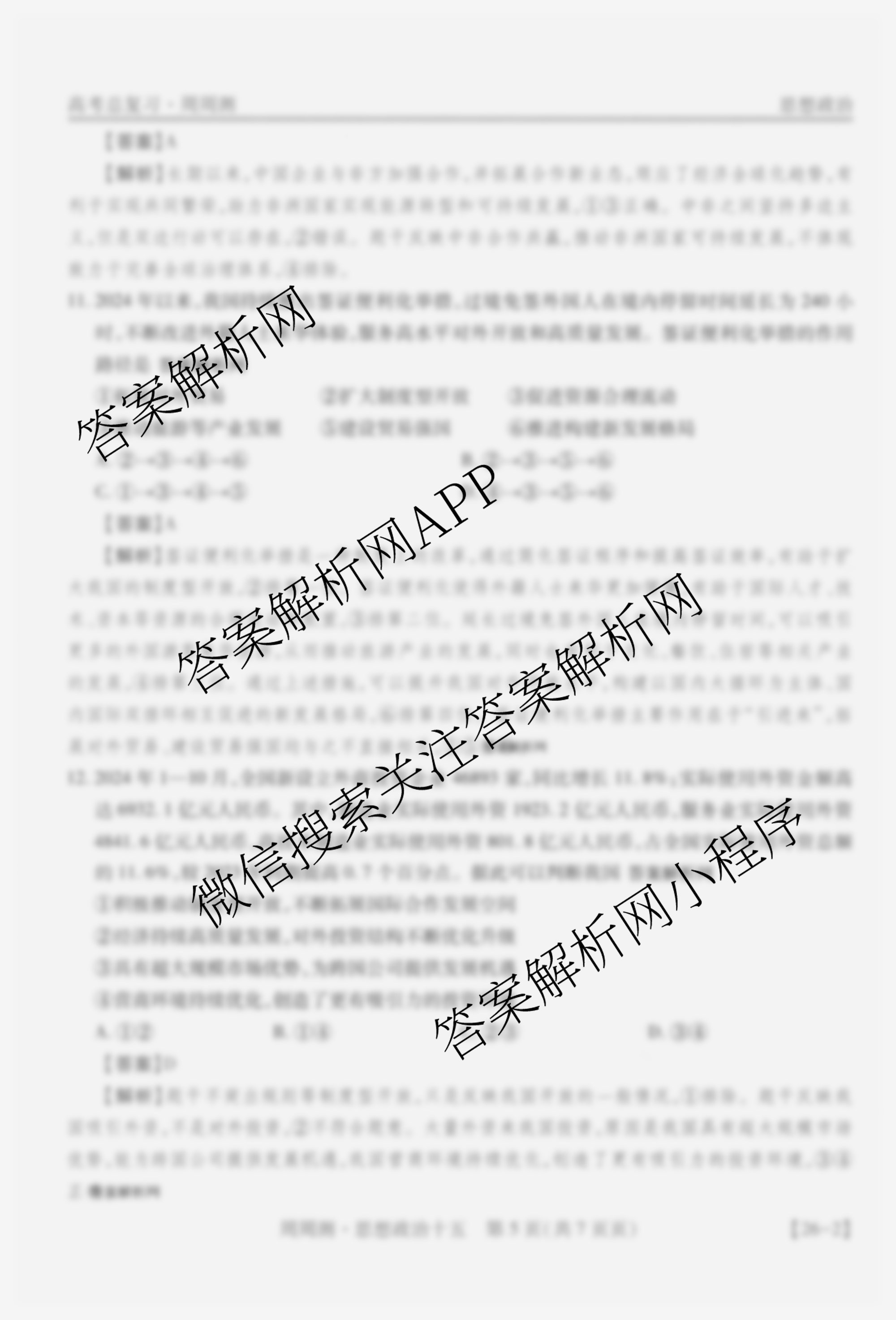 2026届智慧上进高考总复习必刷卷周周测(十五)15政治答案