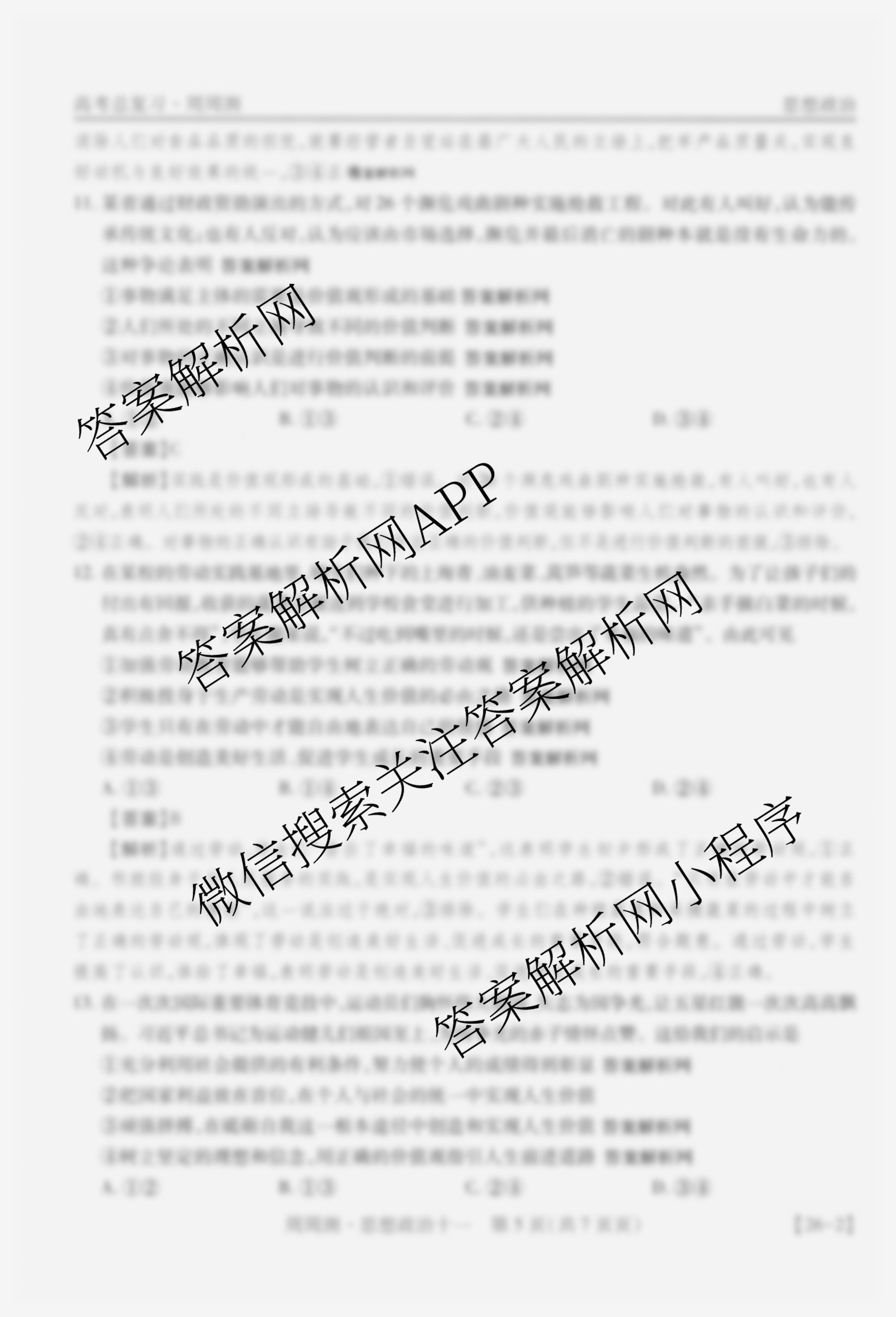 2026届智慧上进高考总复习必刷卷周周测(十一)11政治答案