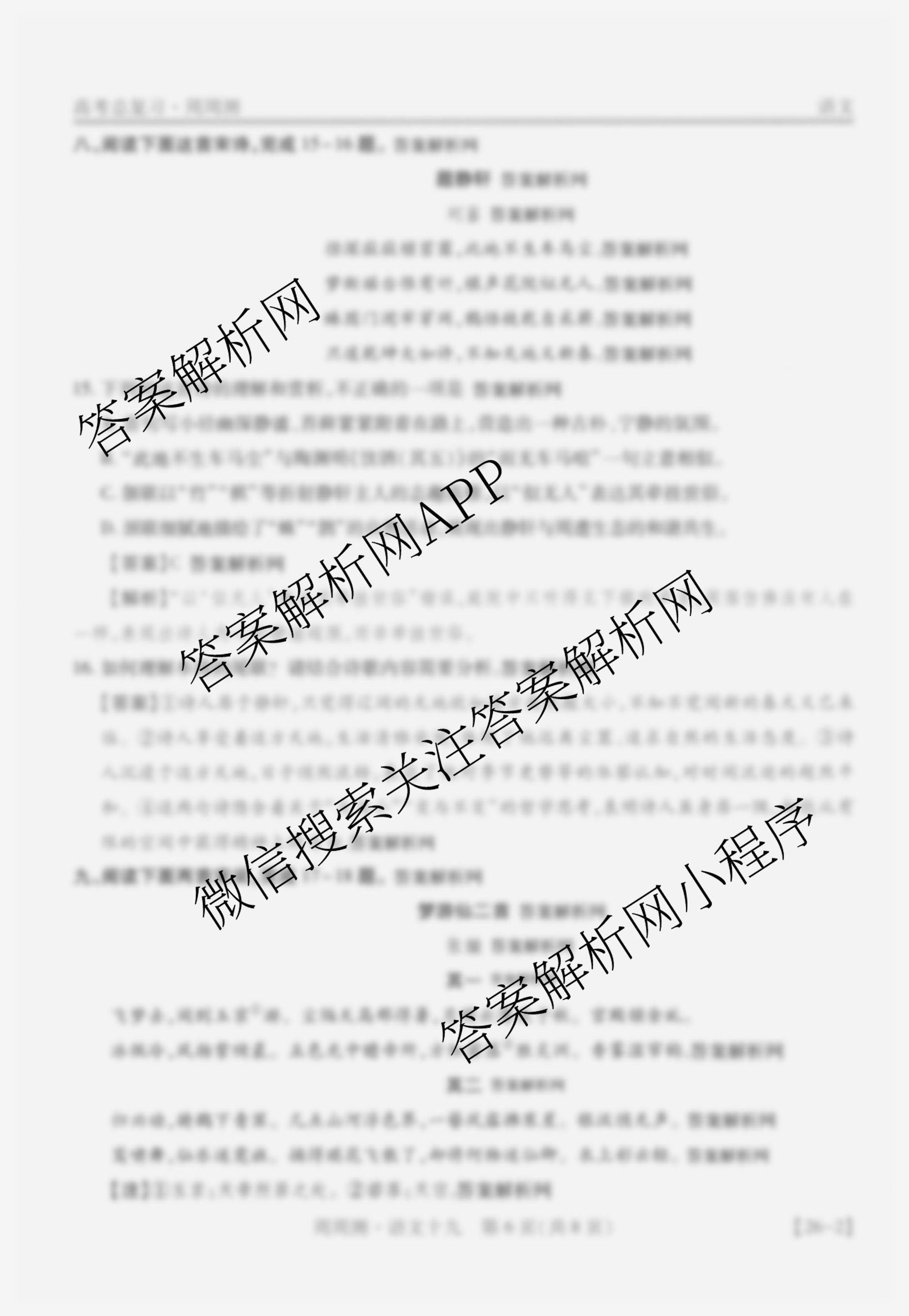 2026届智慧上进高考总复习必刷卷周周测(十九)19语文答案