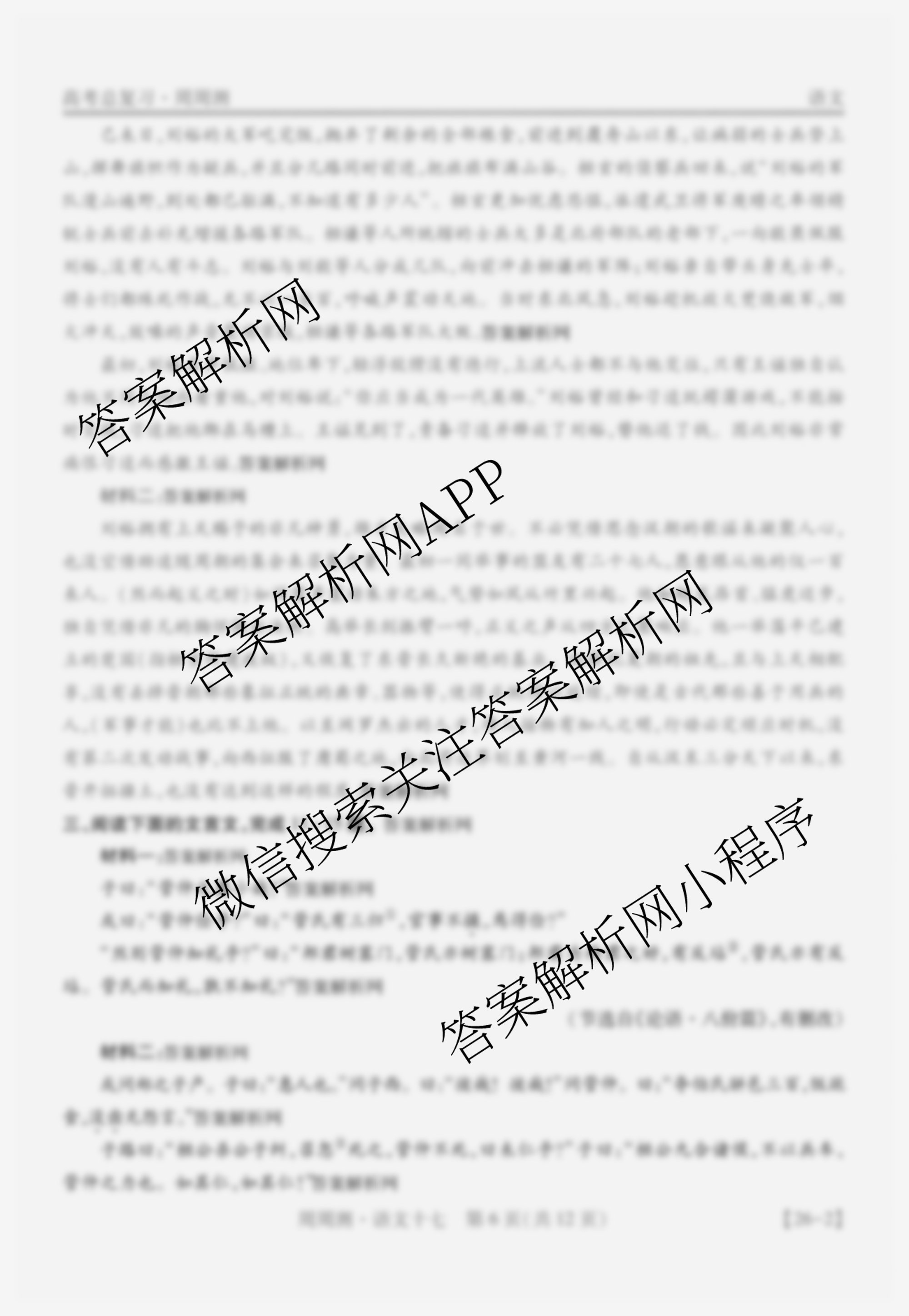 2026届智慧上进高考总复习必刷卷周周测(十七)17语文答案