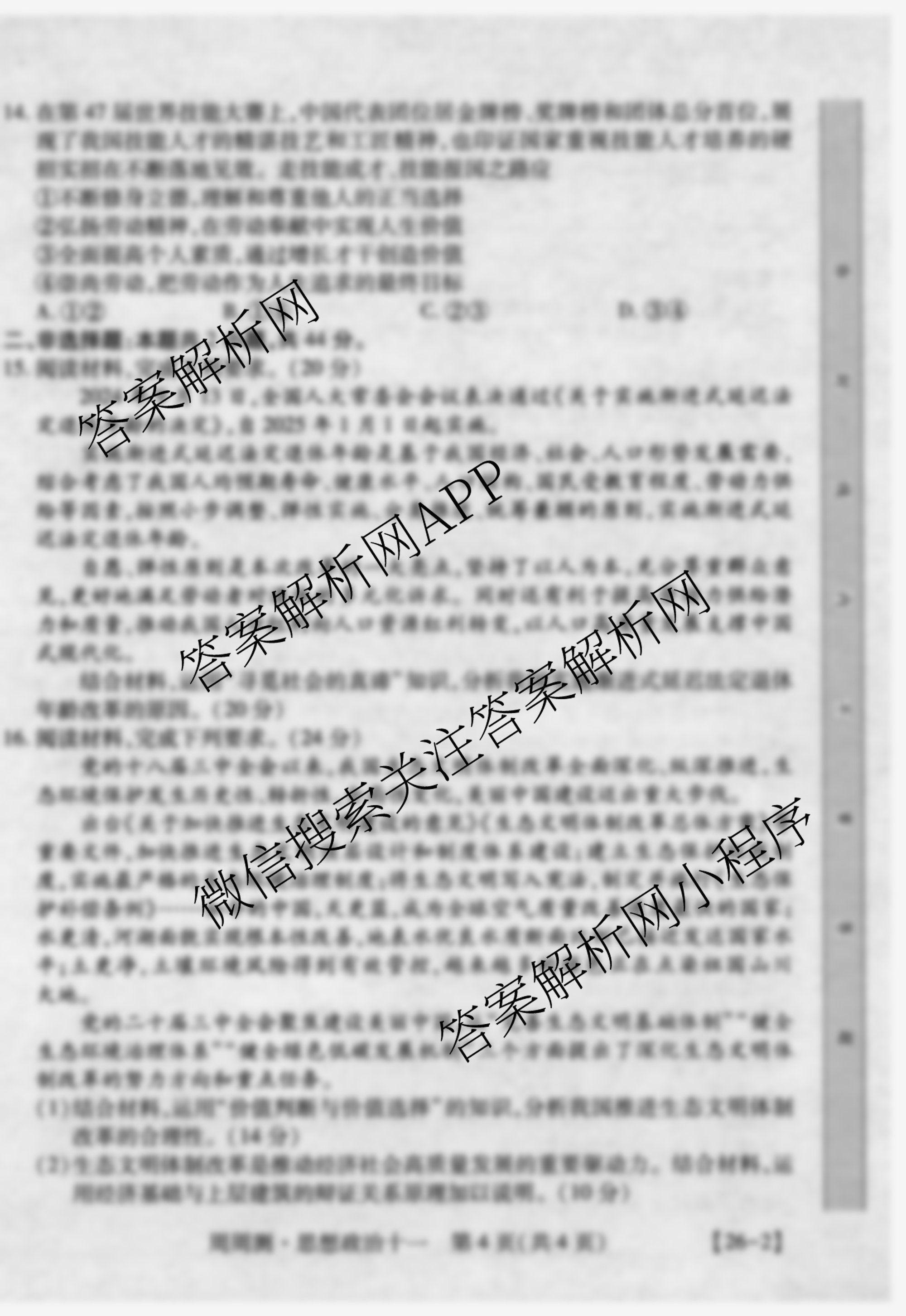 2026届智慧上进高考总复习必刷卷周周测(十一)11政治试题