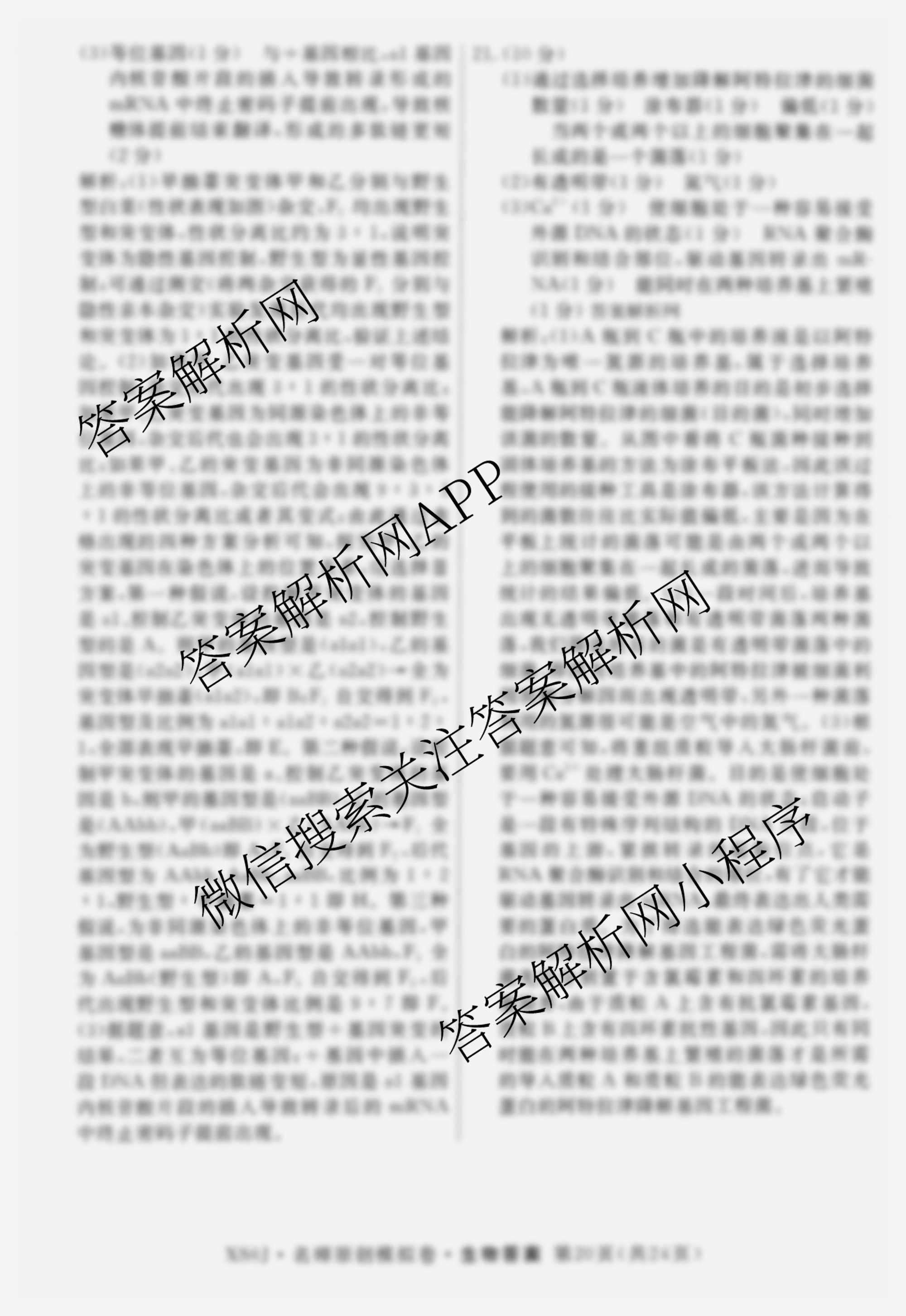 - 2026届([高三]总复习名师原创模拟)(十一)11生物(XS6JG)答案