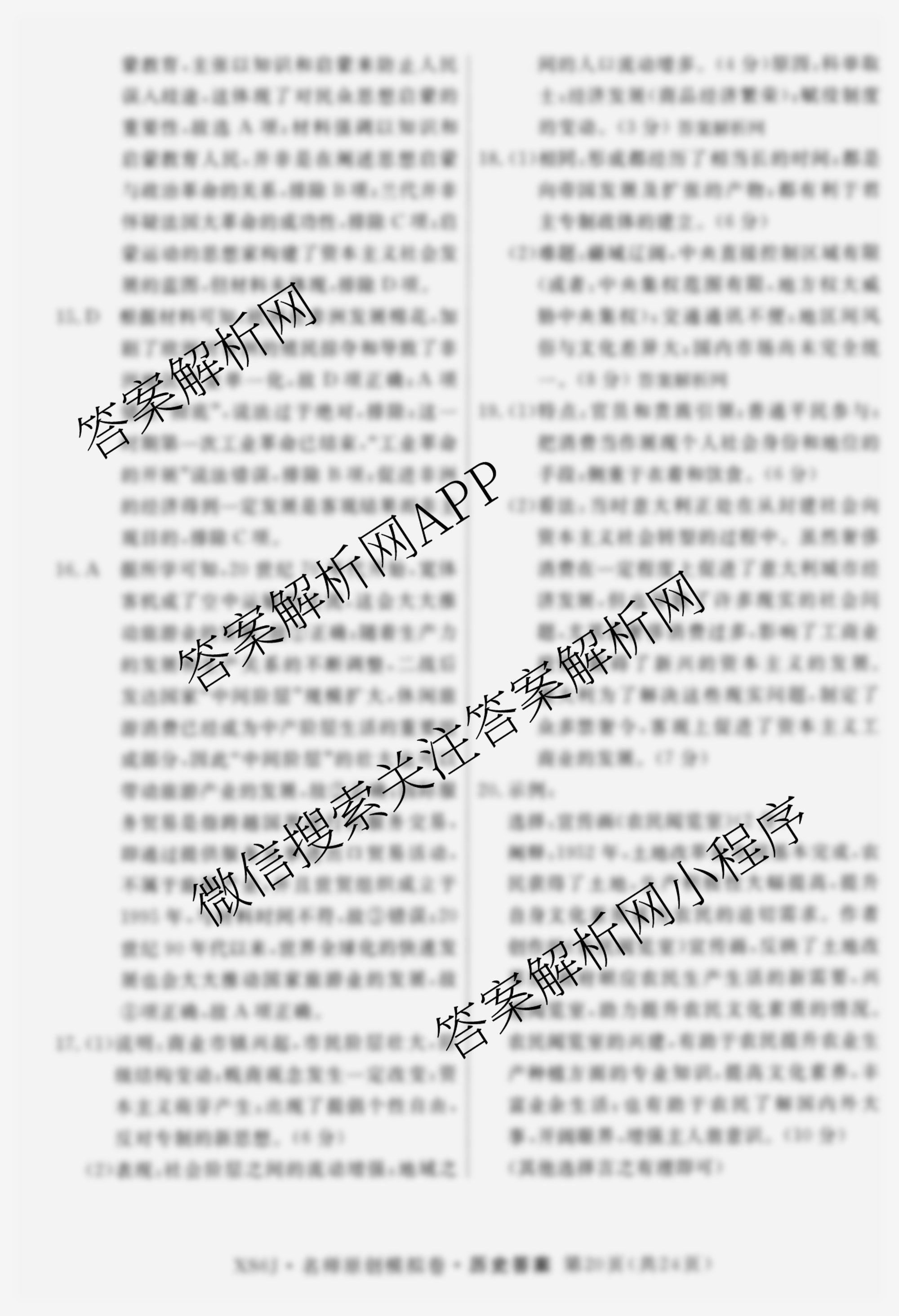 - 2026届((高三)总复习名师原创模拟)(十一)11历史(XS6)答案