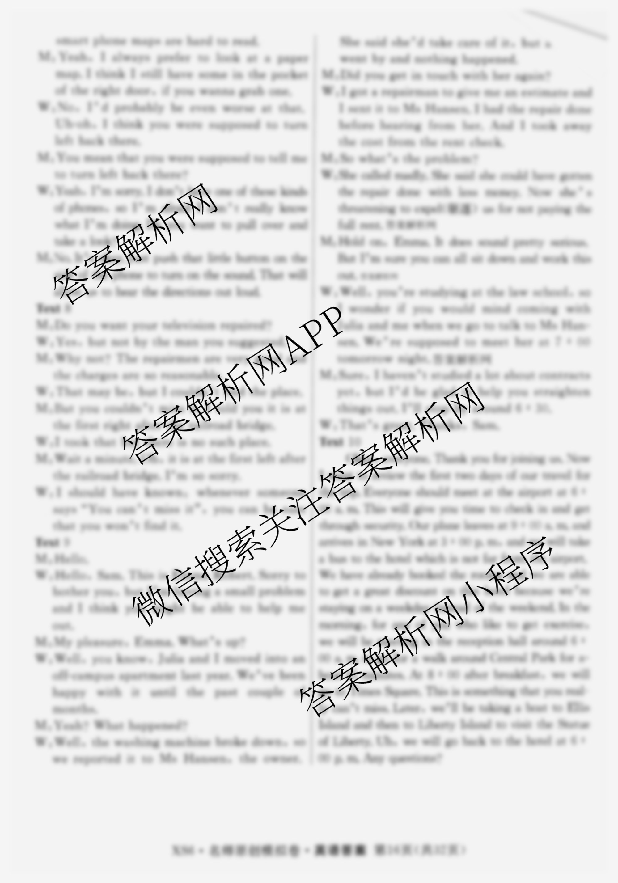 2026届[高三]总复习·名师原创模拟(九)9英语(XS6)答案