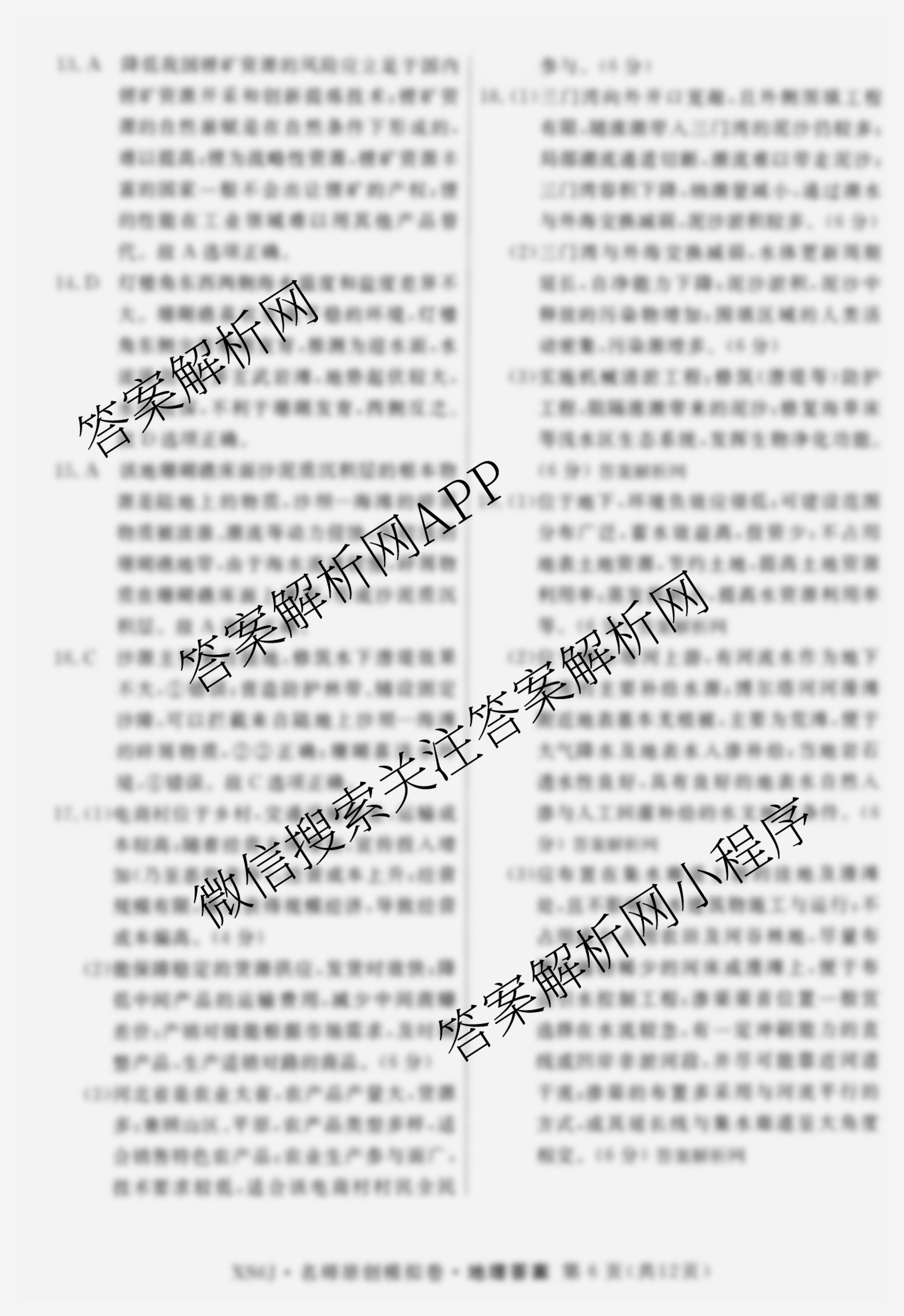 - 2026届[高三][总复习·名师原创模拟](九)9地理(XS6)答案
