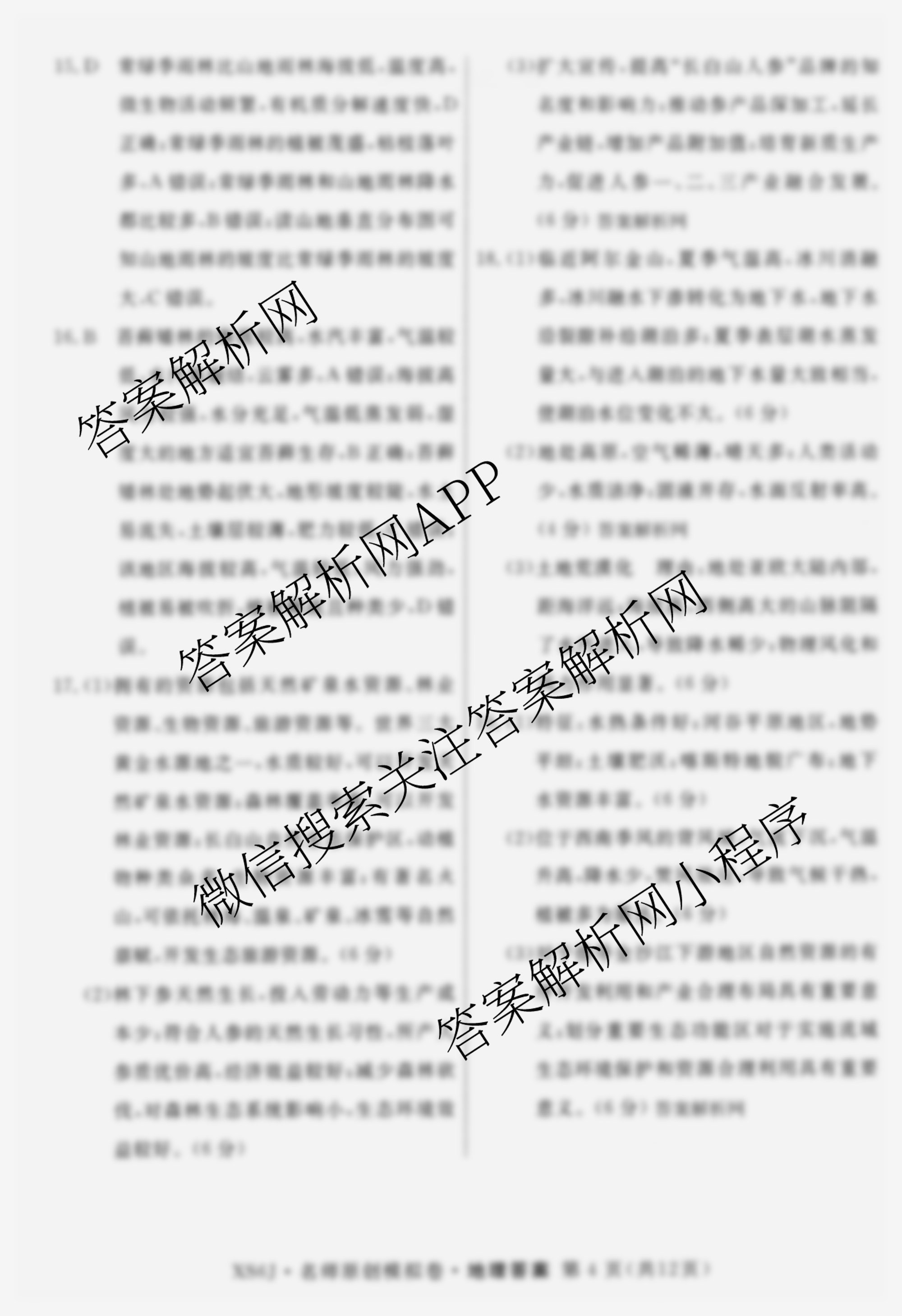 - 2026届((高三)总复习名师原创模拟)(八)8地理(新S6J)答案