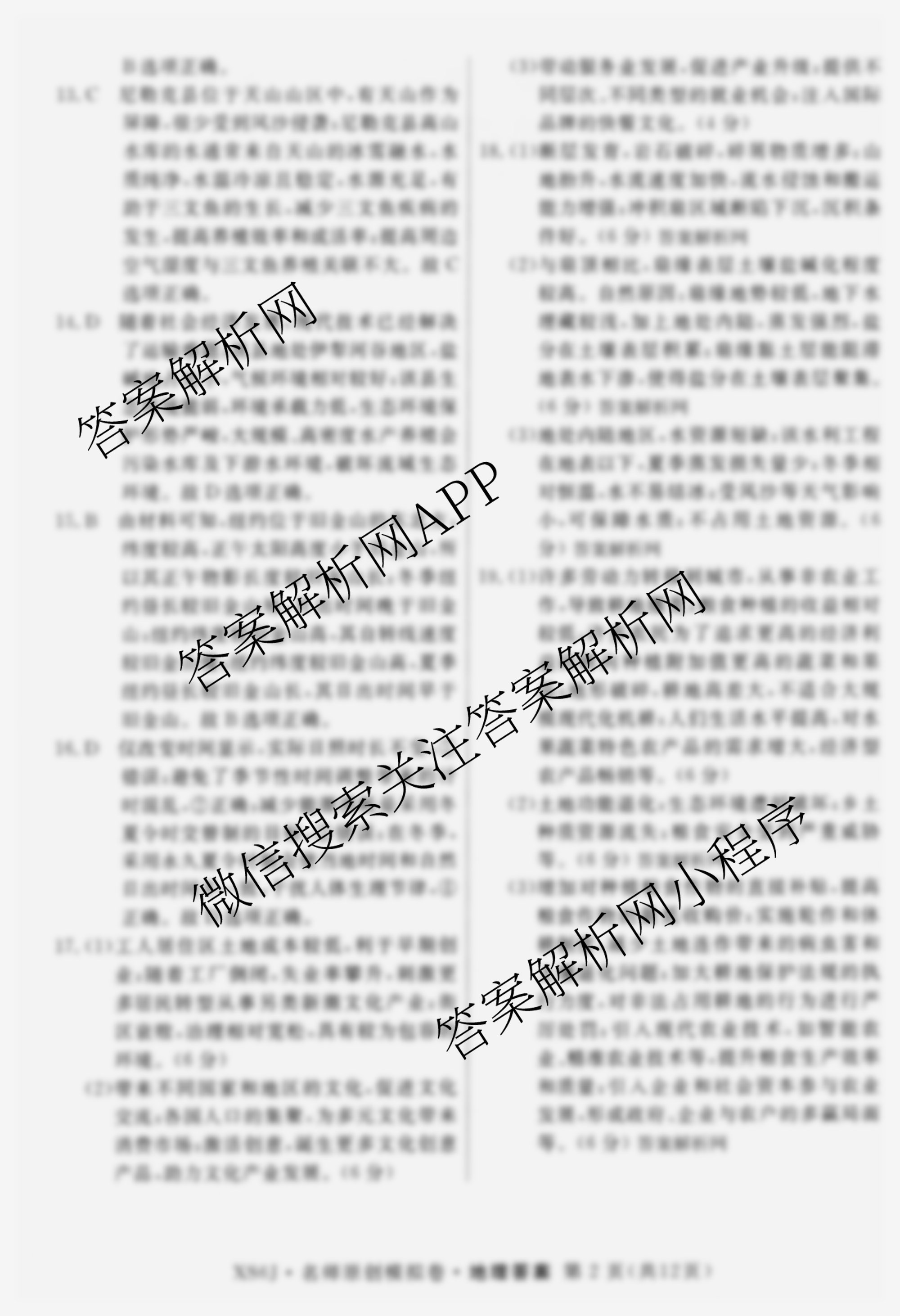 - 2026届(高三)(总复习·名师原创模拟)(七)7地理(XS6)答案