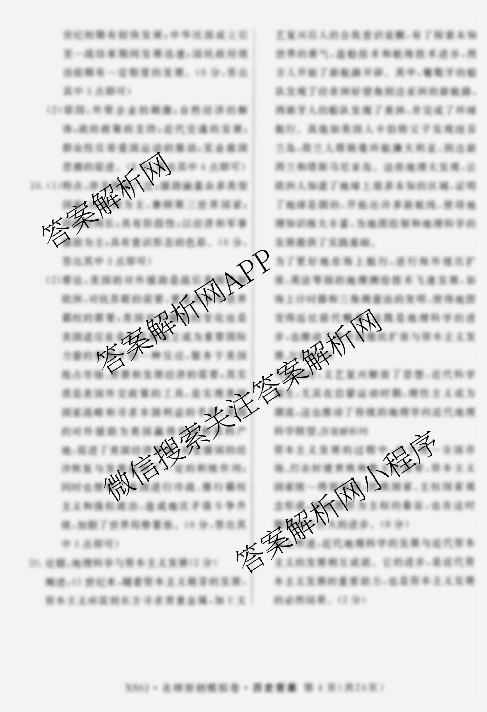 - 2026届[高三总复习名师原创模拟](七)7历史(XS6J)答案