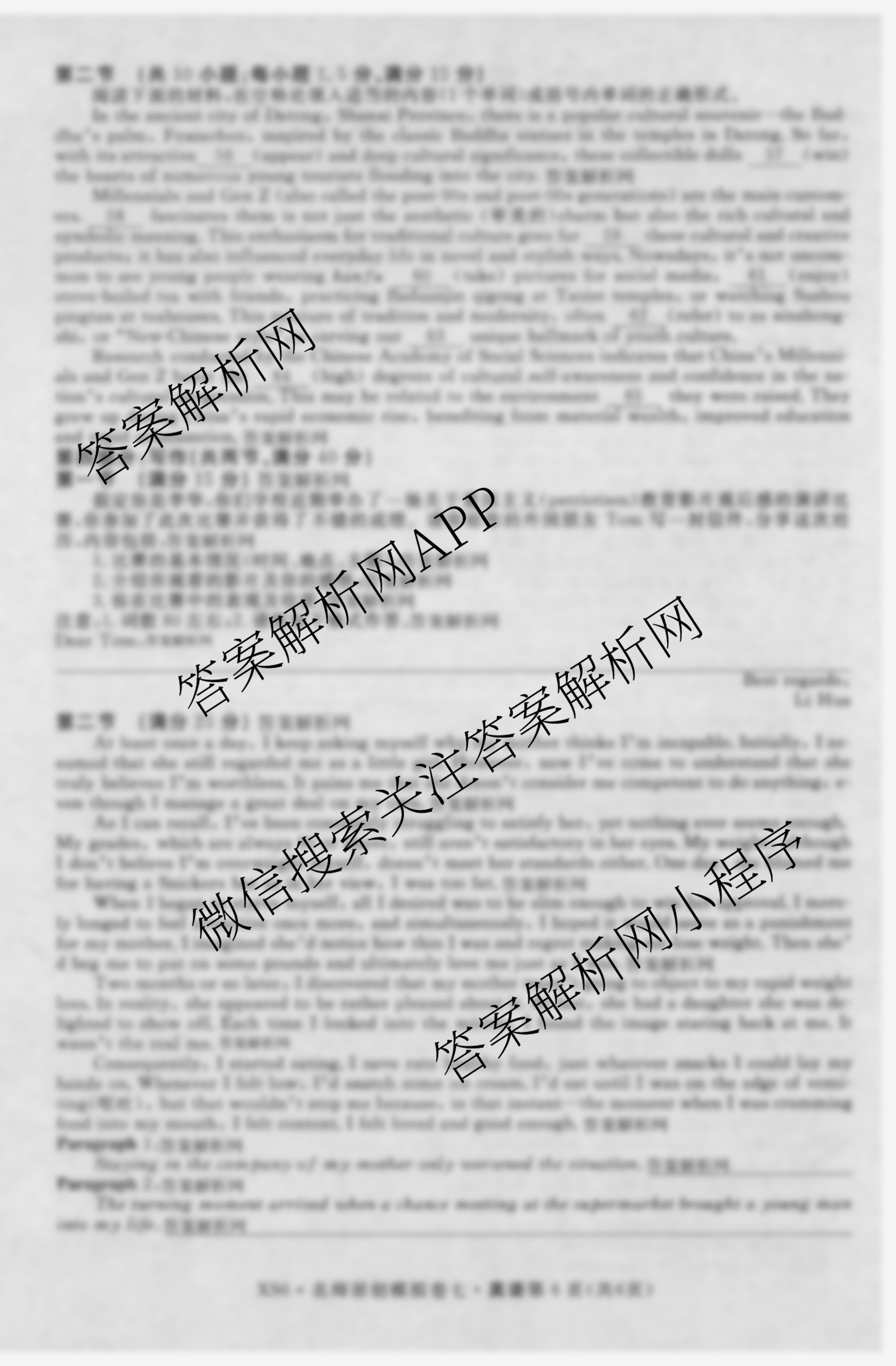 2026届(高三总复习名师原创模拟)(七)7英语(XS6)试题