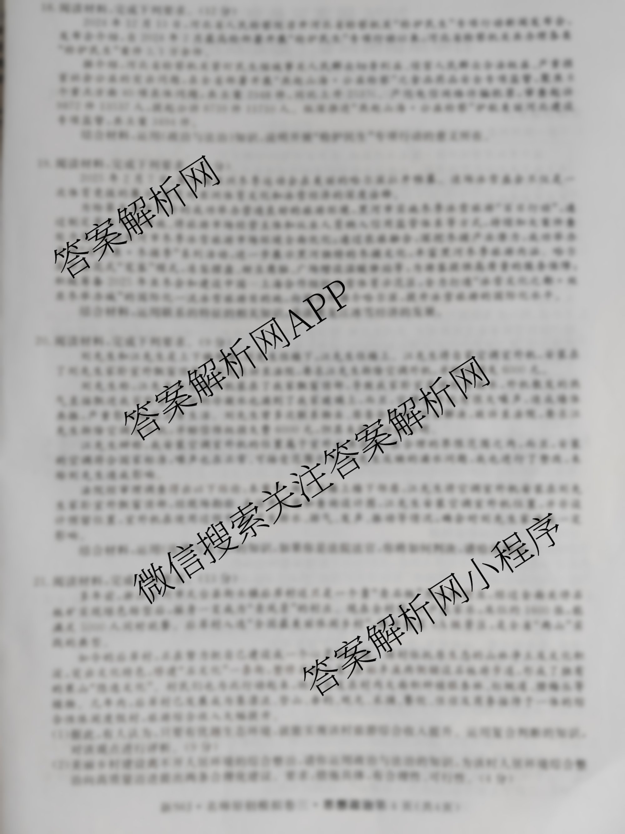 - 2026届[(高三)总复习·名师原创模拟](三)3政治(新S6J)答案