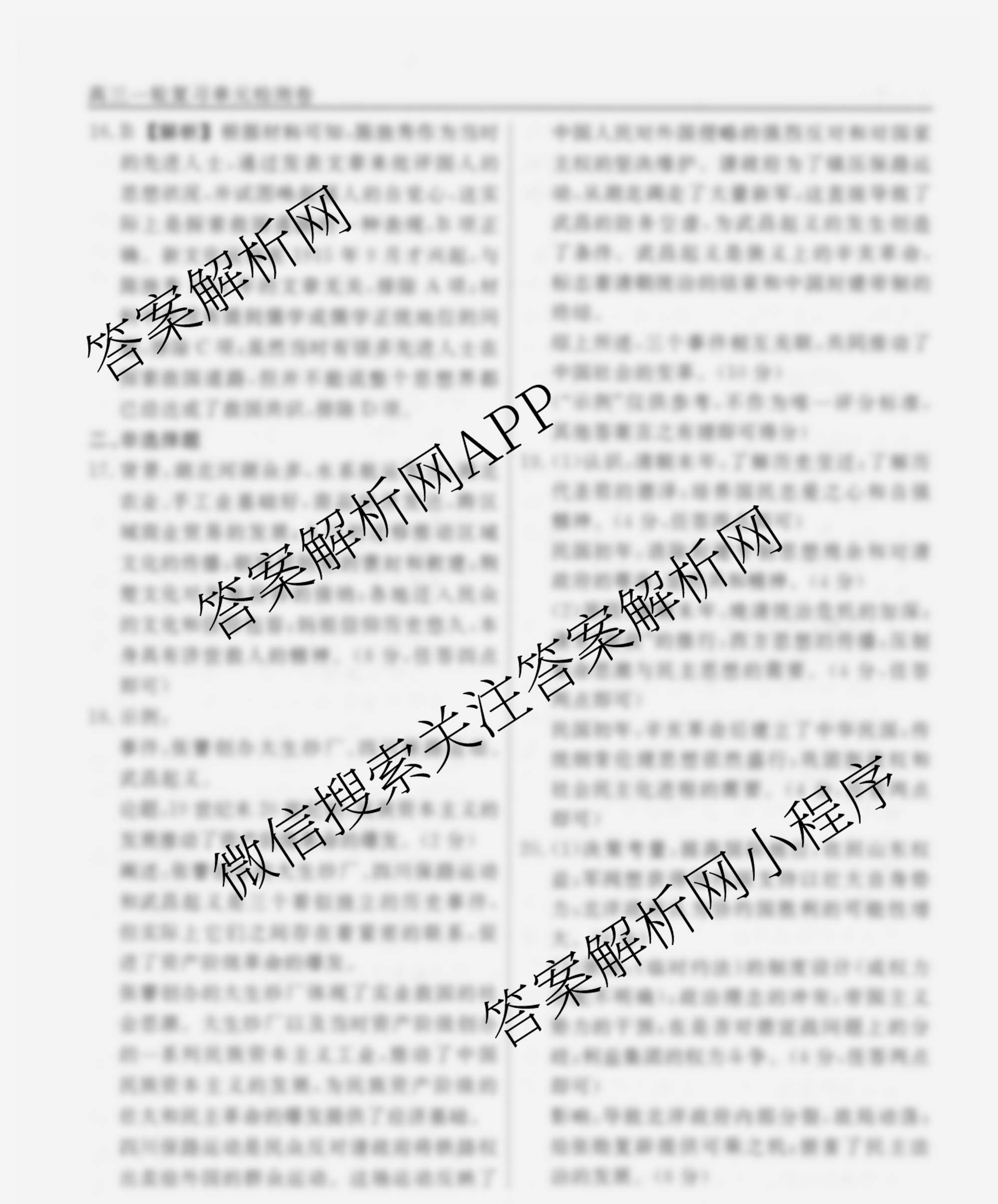 衡水名师卷2025-2026学年度高三一轮复习单元检测卷历史(双菱形)检测(六)6答案