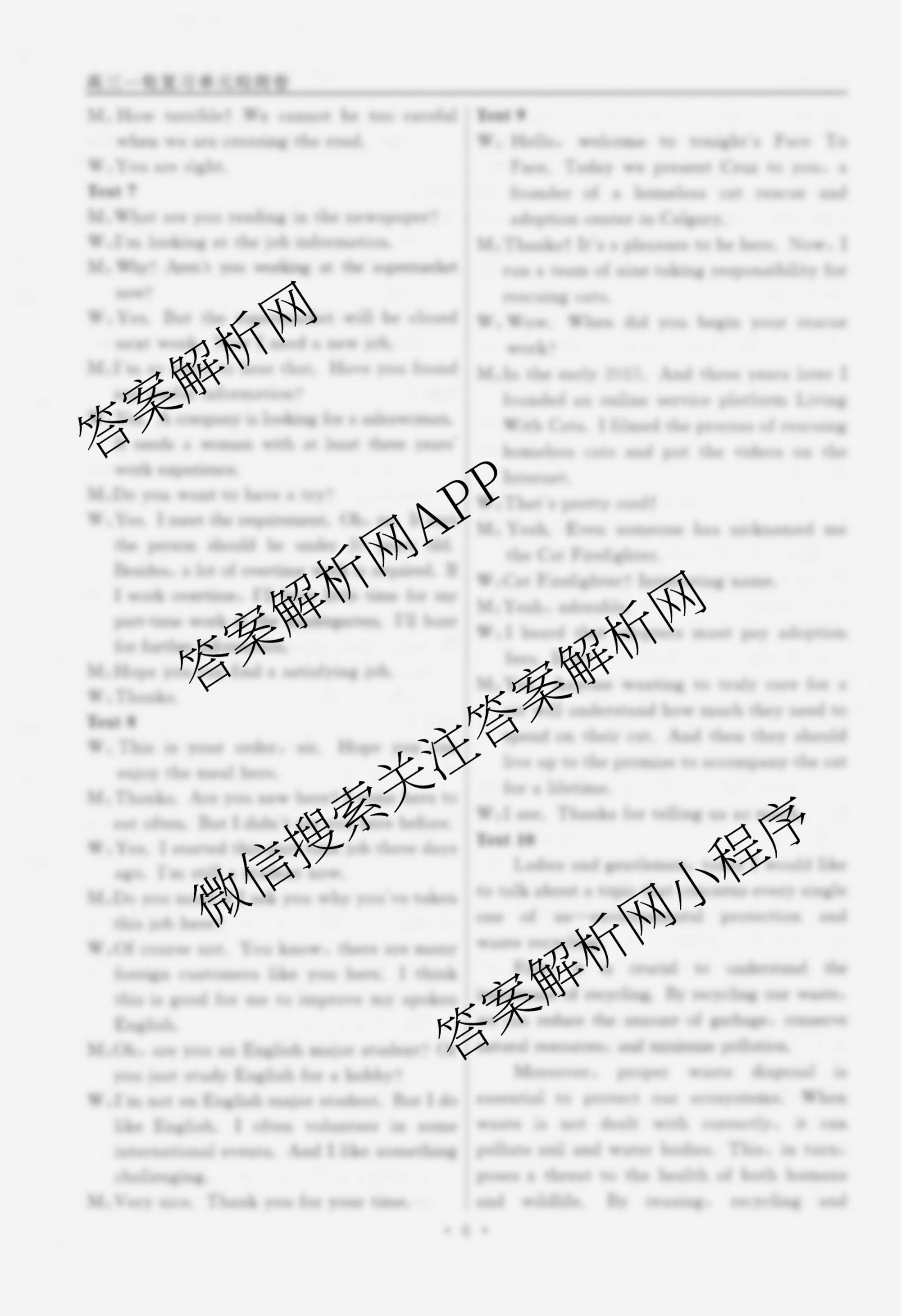 衡水名师卷2025-2026学年度高三一轮复习单元检测卷英语(空心菱形)检测(一)1答案