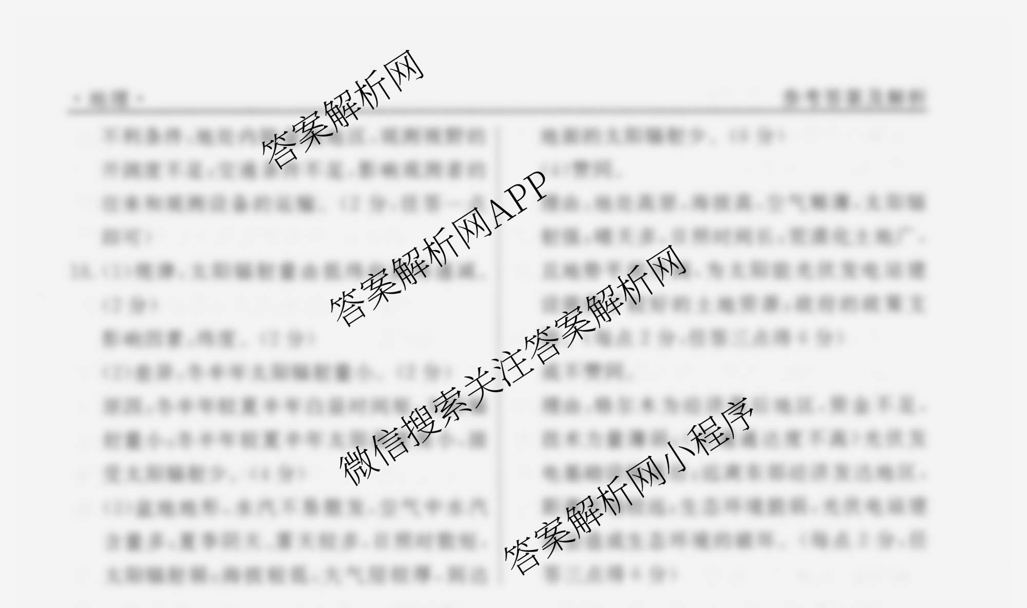 衡水名师卷2025-2026学年度高三一轮复习考点测试卷(二)2地理(40分钟空心菱形)答案