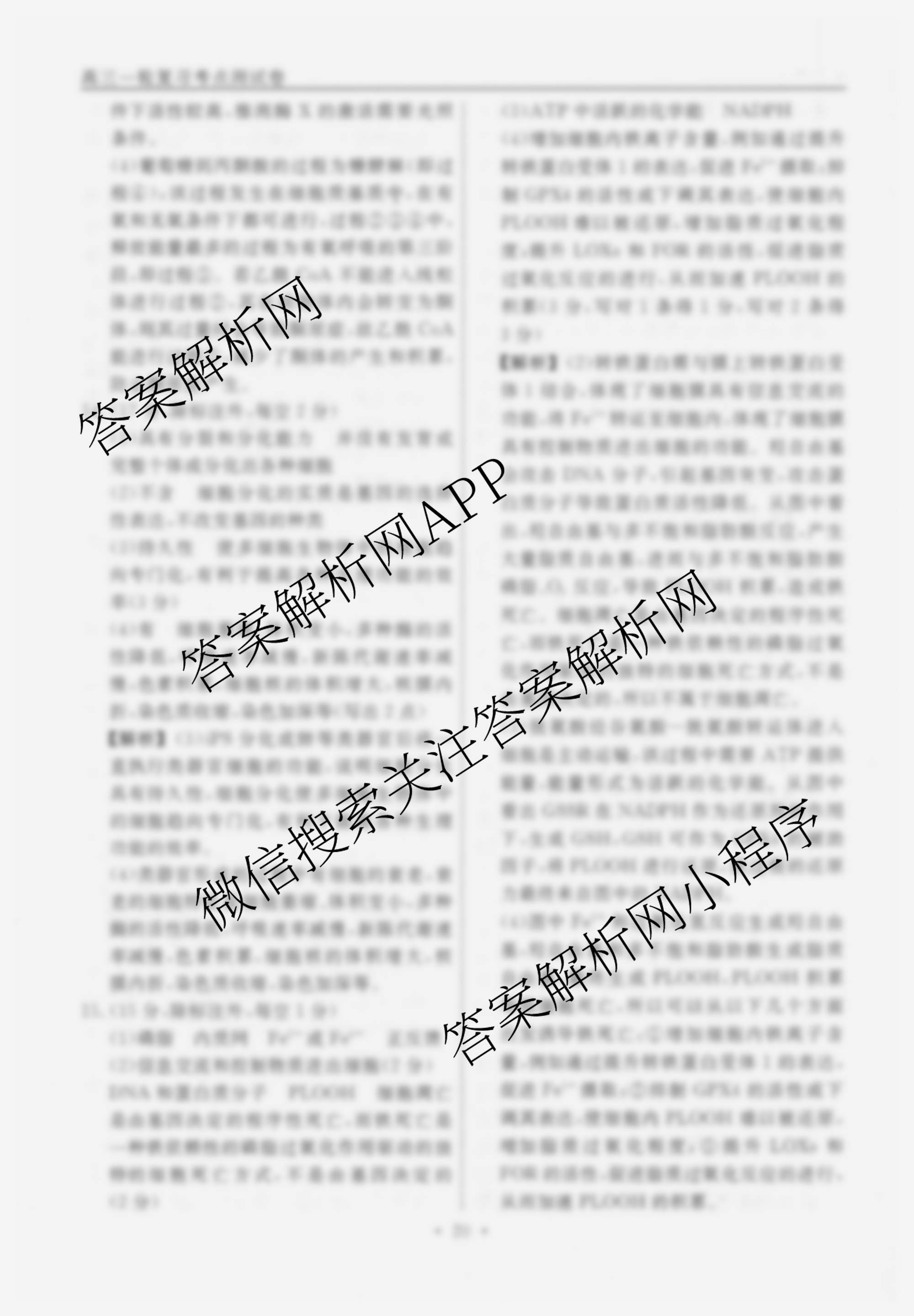 衡水名师卷2025-2026学年度高三一轮复习考点测试卷(七)7生物(40分钟实心菱形)答案