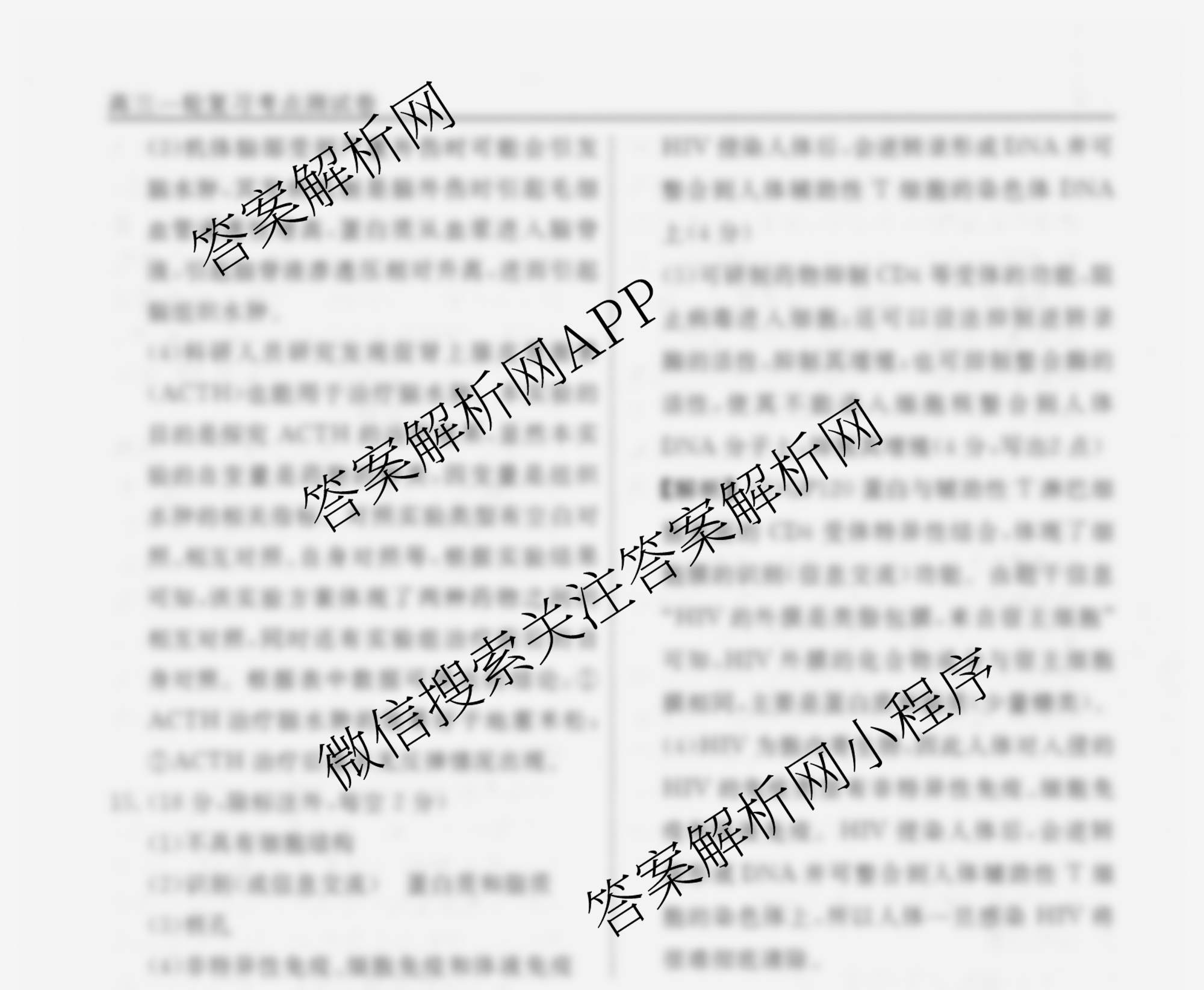 衡水名师卷2025-2026学年度高三一轮复习考点测试卷(十九)19生物(40分钟实心菱形)答案