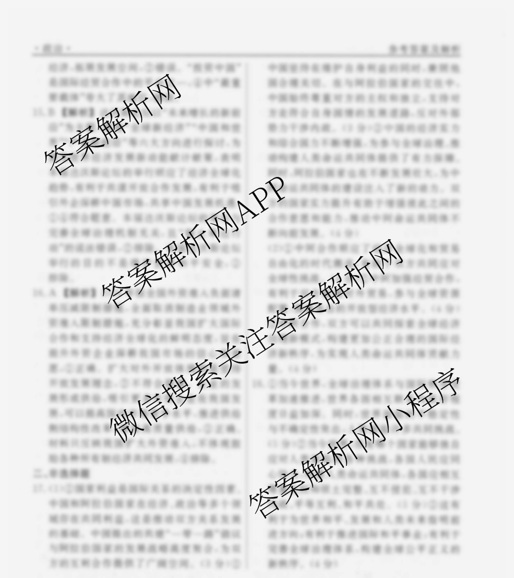 衡水名师卷2025-2026学年度高三一轮复习考点测试卷(二十六)26政治(40分钟双菱形)答案