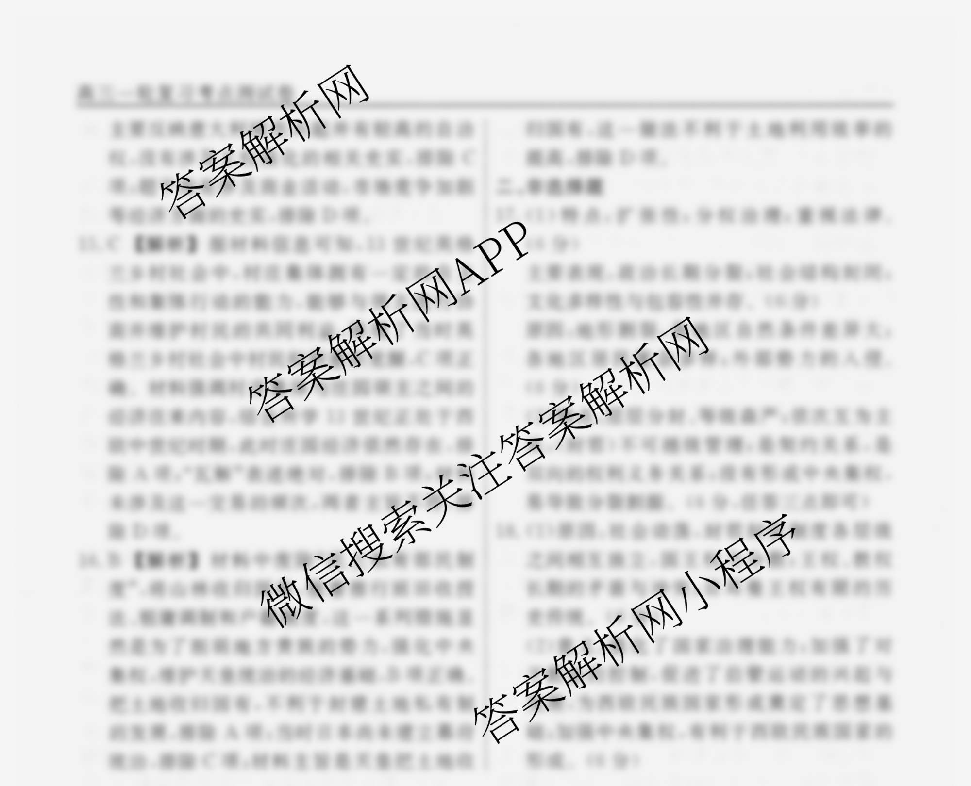 衡水名师卷2025-2026学年度高三一轮复习考点测试卷(十七)17历史(40分钟空心菱形)答案