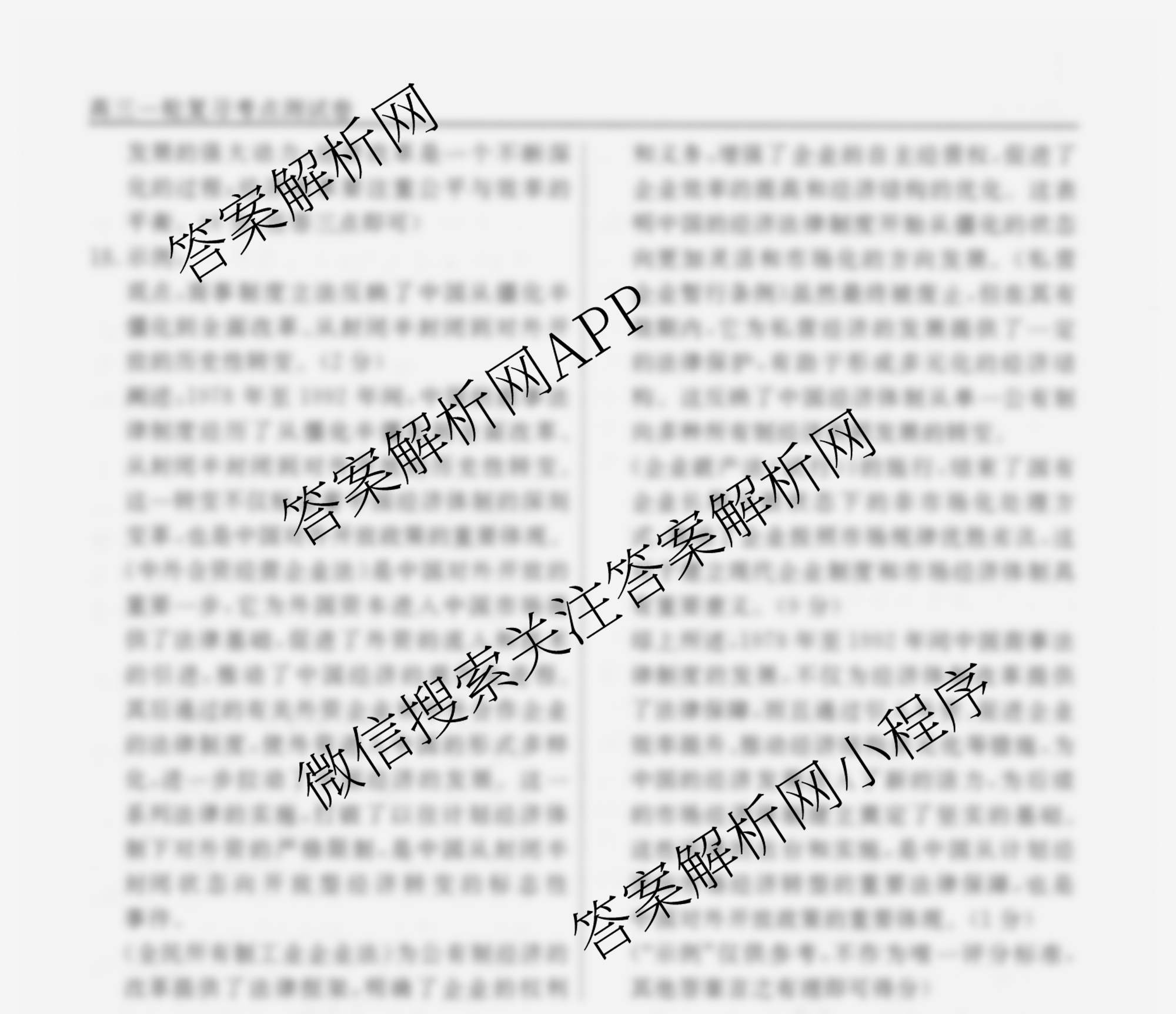 衡水名师卷2025-2026学年度高三一轮复习考点测试卷(十四)14历史(40分钟空心菱形)答案
