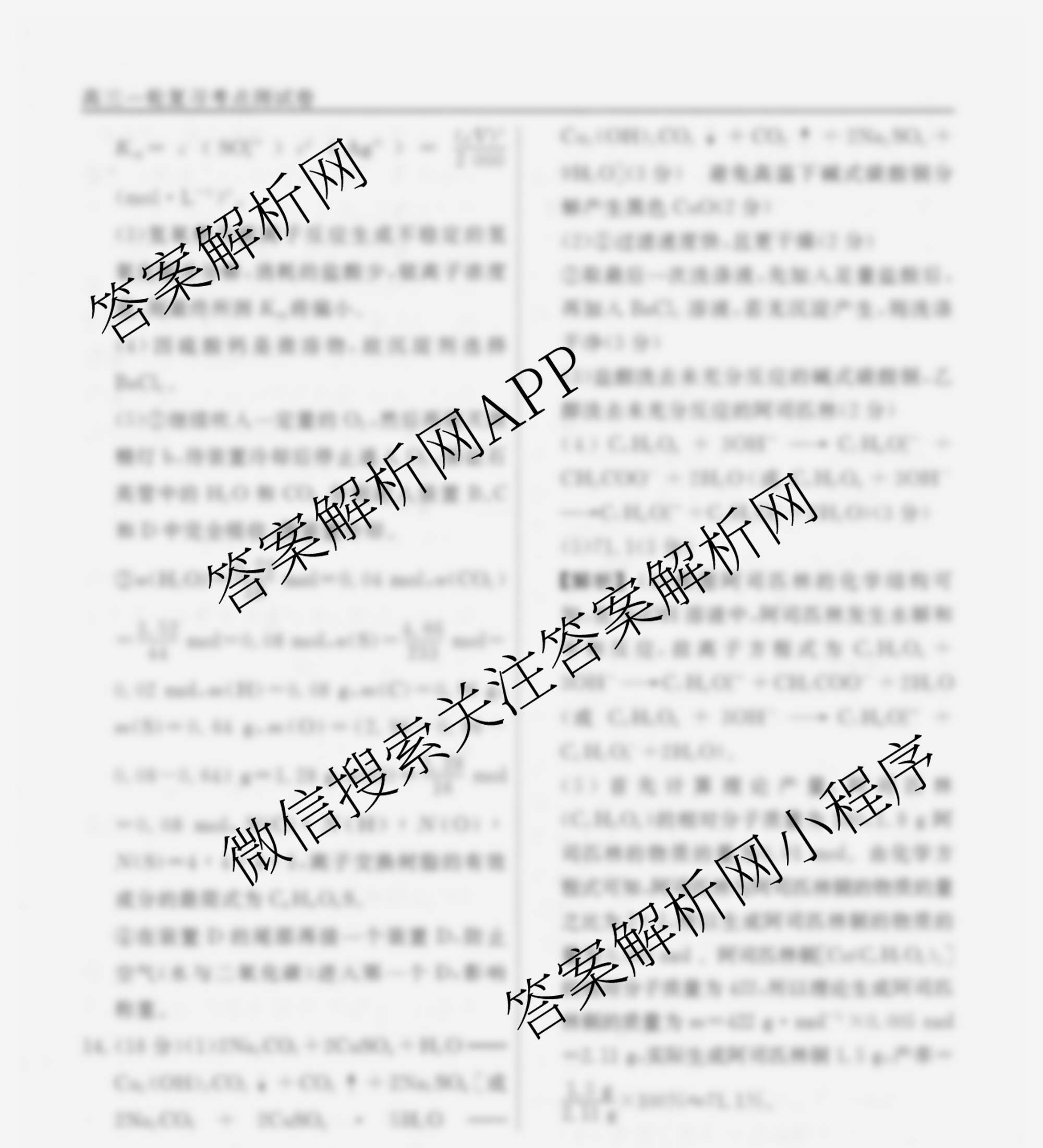 衡水名师卷2025-2026学年度高三一轮复习考点测试卷(七)7化学(40分钟空心菱形)答案