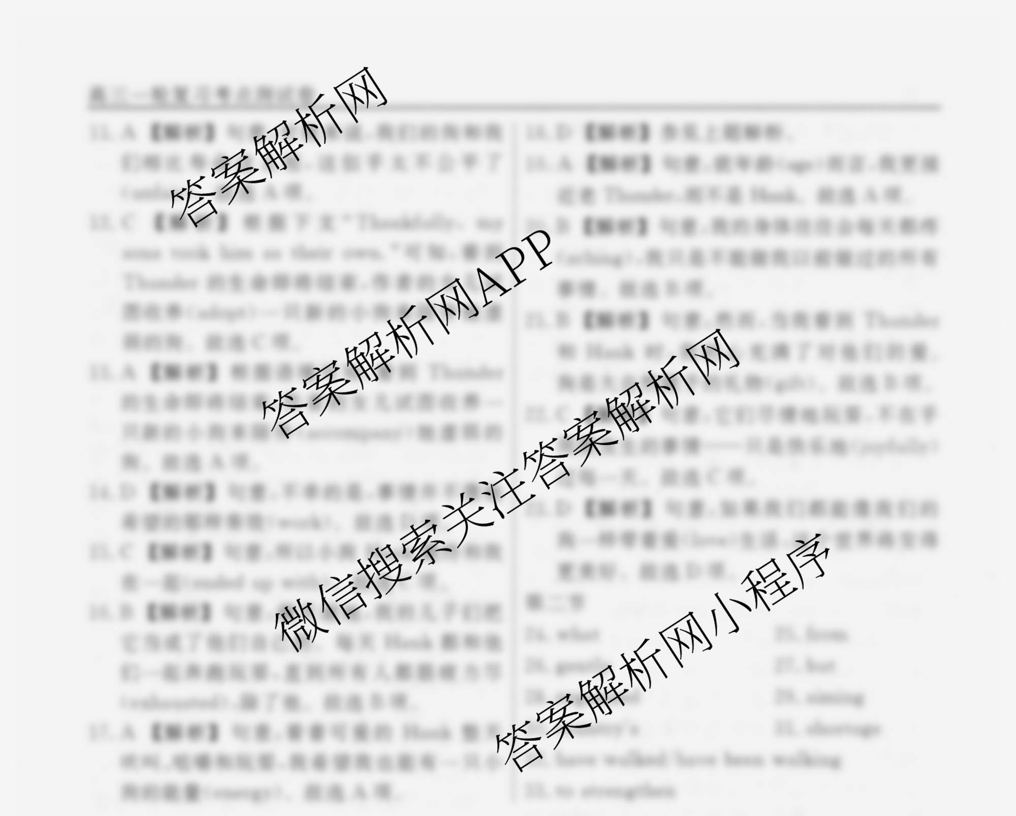 衡水名师卷2025-2026学年度高三一轮复习考点测试卷(十七)17英语(空心菱形)答案