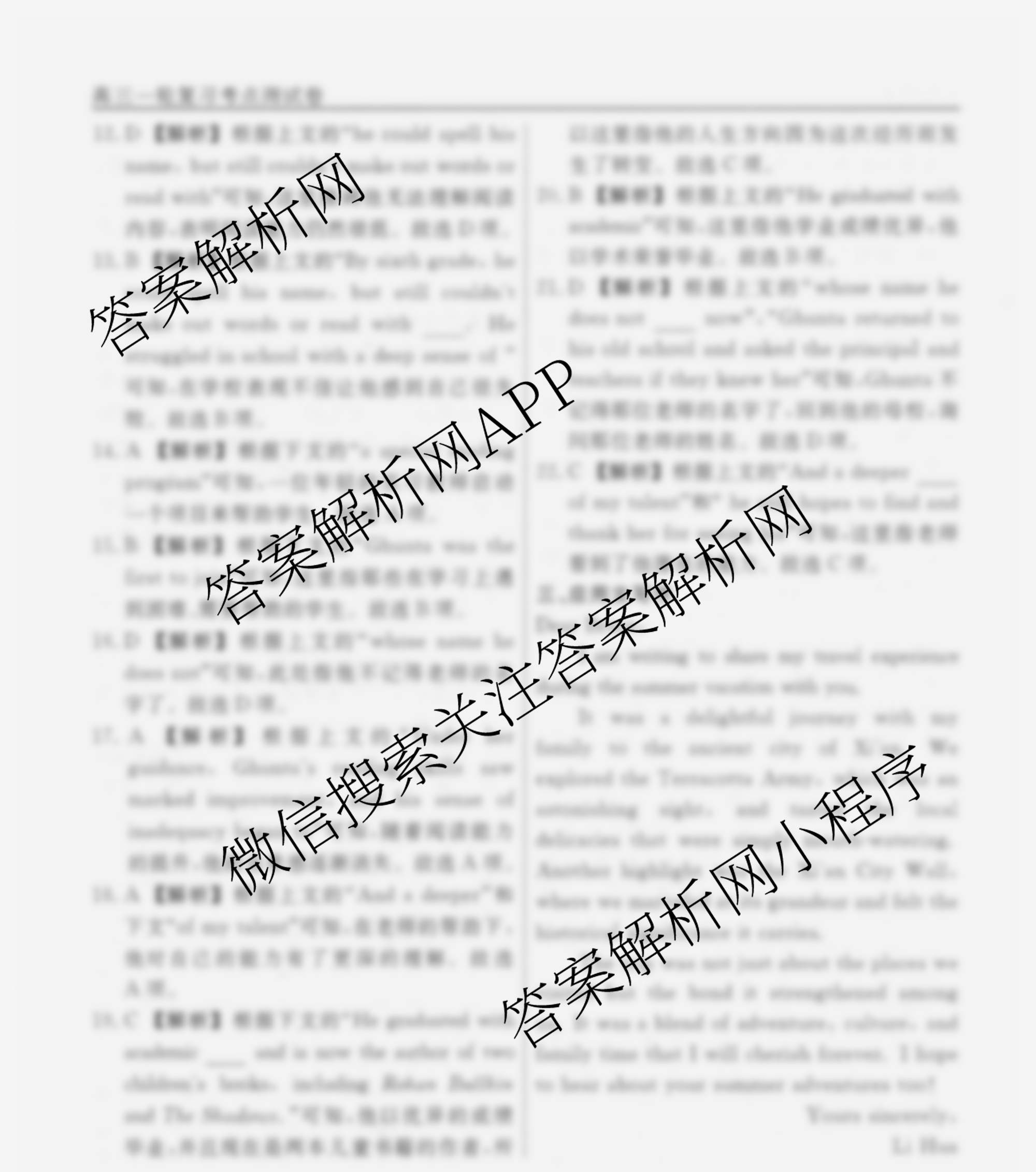 衡水名师卷2025-2026学年度高三一轮复习考点测试卷(十二)12英语(空心菱形)答案