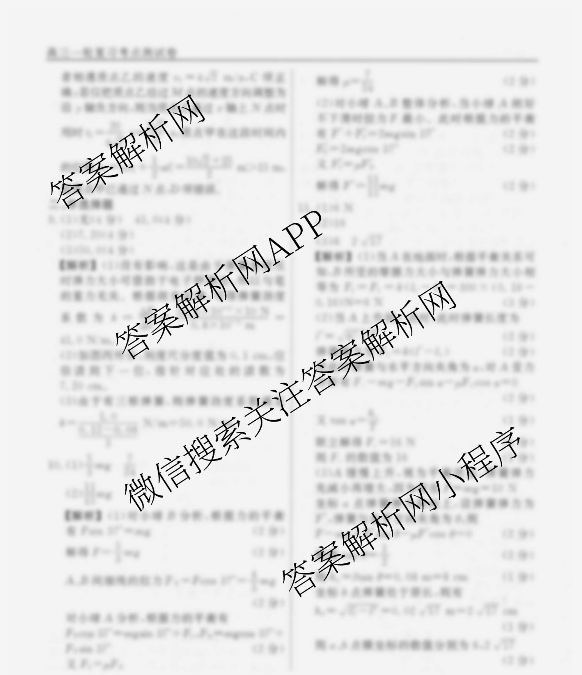 衡水名师卷2025-2026学年度高三一轮复习考点测试卷(三)3物理(40分钟空心菱形)答案