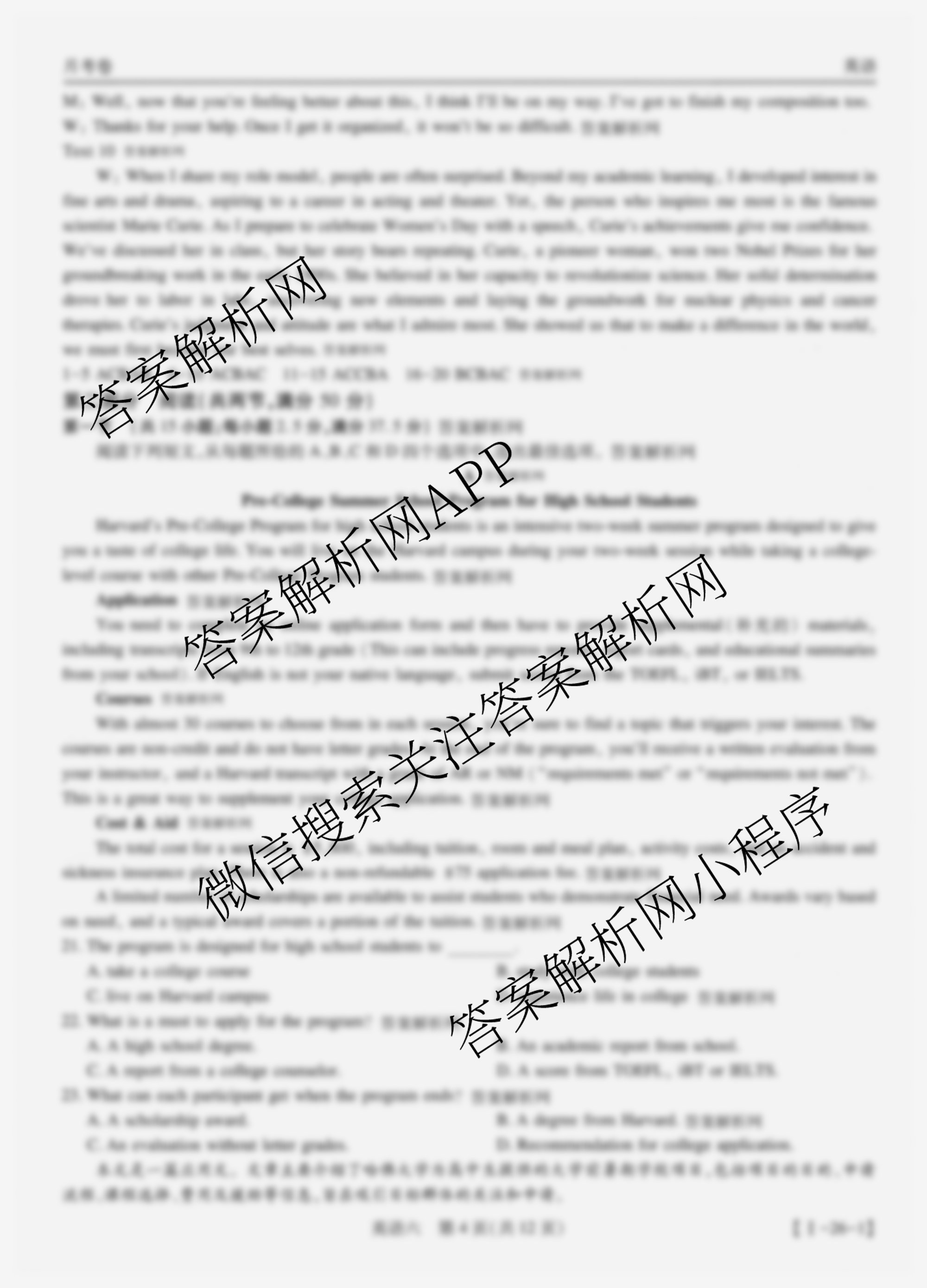 - 2026届(智慧上进)[高三]总复习双向达标月考调研卷(六)6英语(II)答案