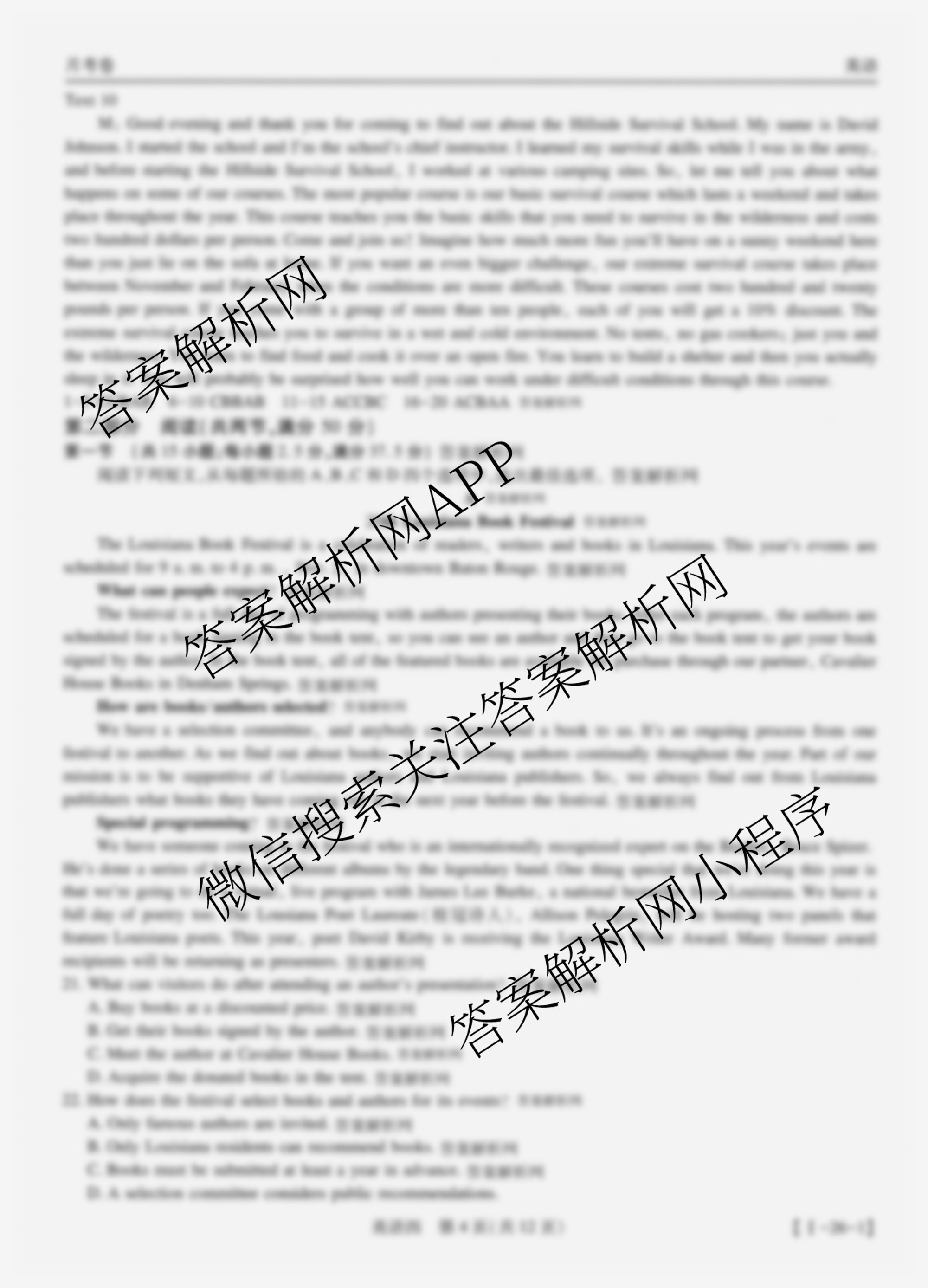 智慧上进2026届高三总复习双向达标月考调研卷(四)4英语(I)答案