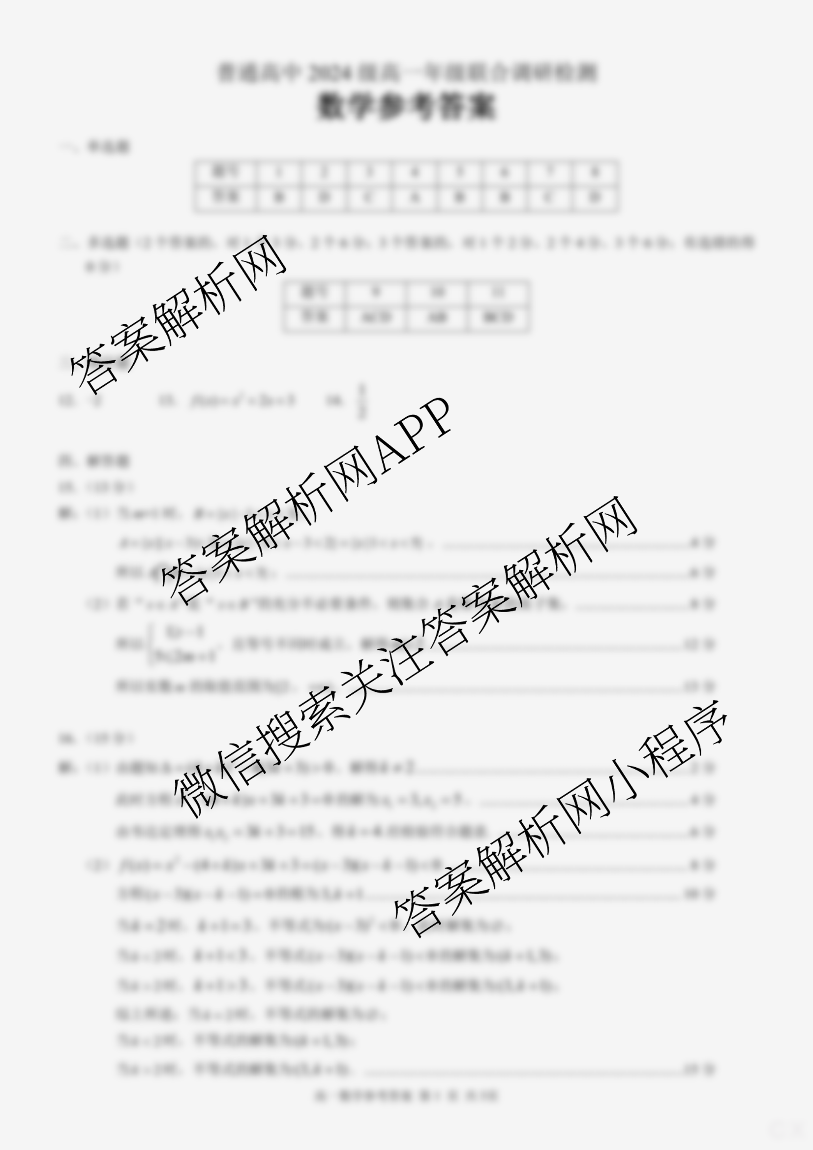 - 高一[广西名校]2024级年级联合调研检测(11月)数学答案