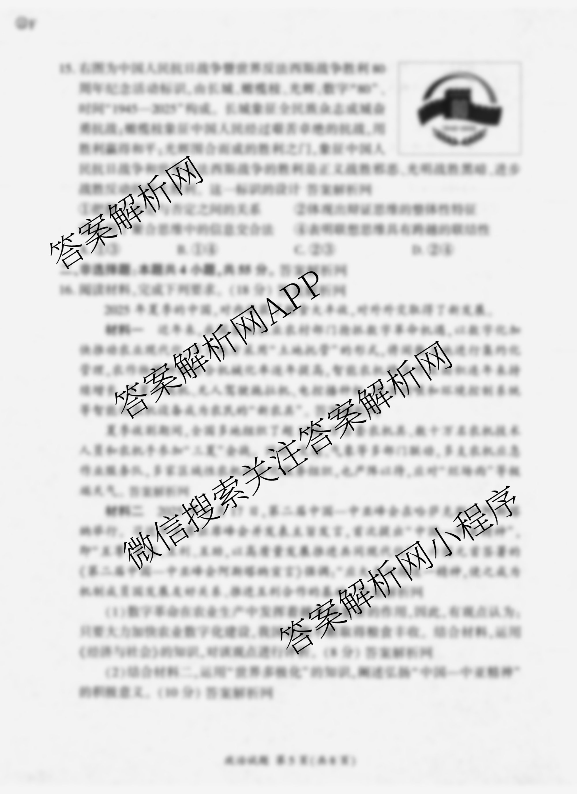 - 2026届[高三][百师联盟]·开学摸底联考政治(百Y)答案