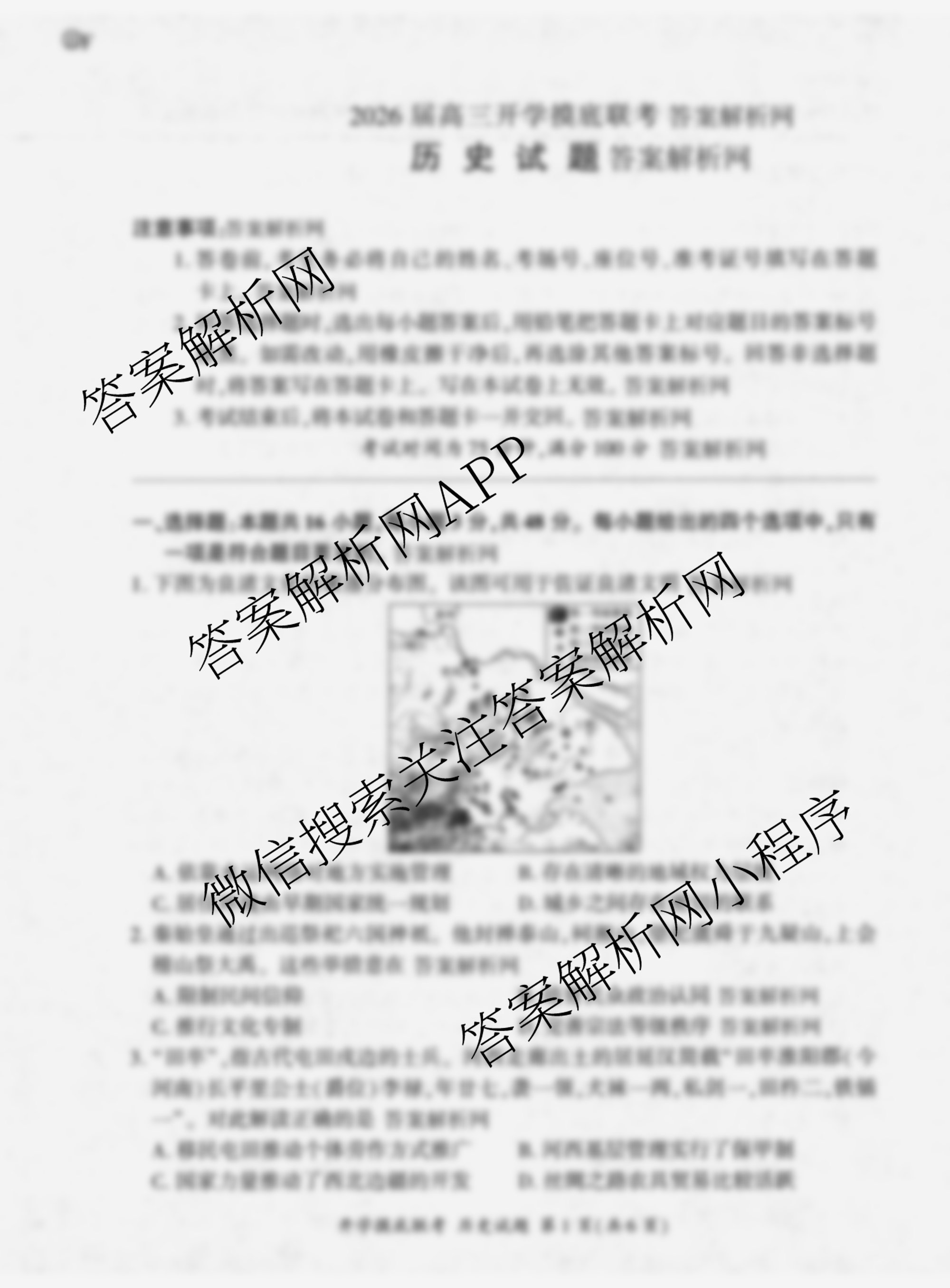 - [百师联盟]2026届(高三)开学摸底联考历史(百L)答案