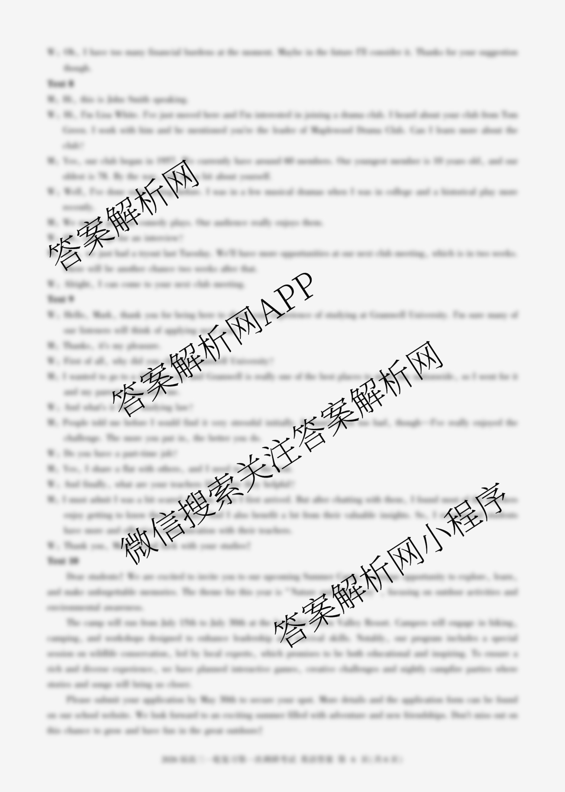 - [高三][百师联盟]·2026届一轮复习第一次调研考试英语(百A)答案
