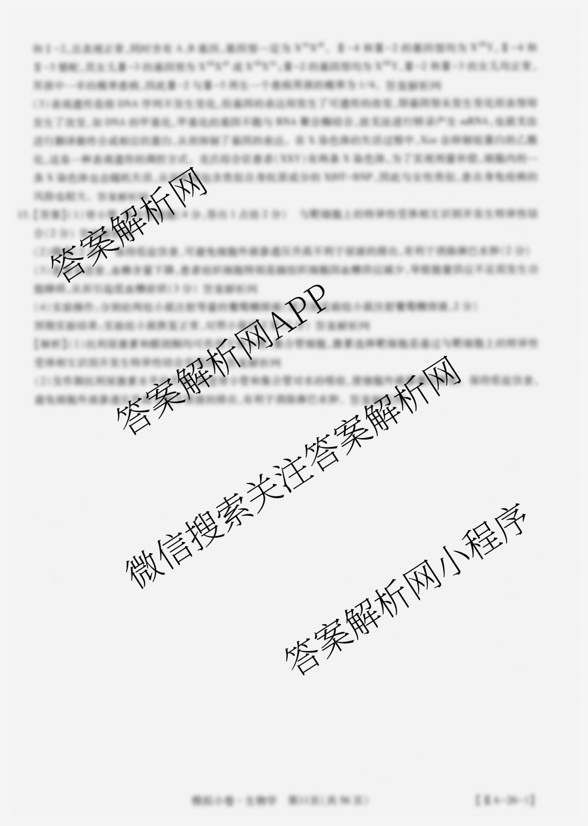 智慧上进2026届限时训练综合模拟小卷(四)4生物(IIA)答案