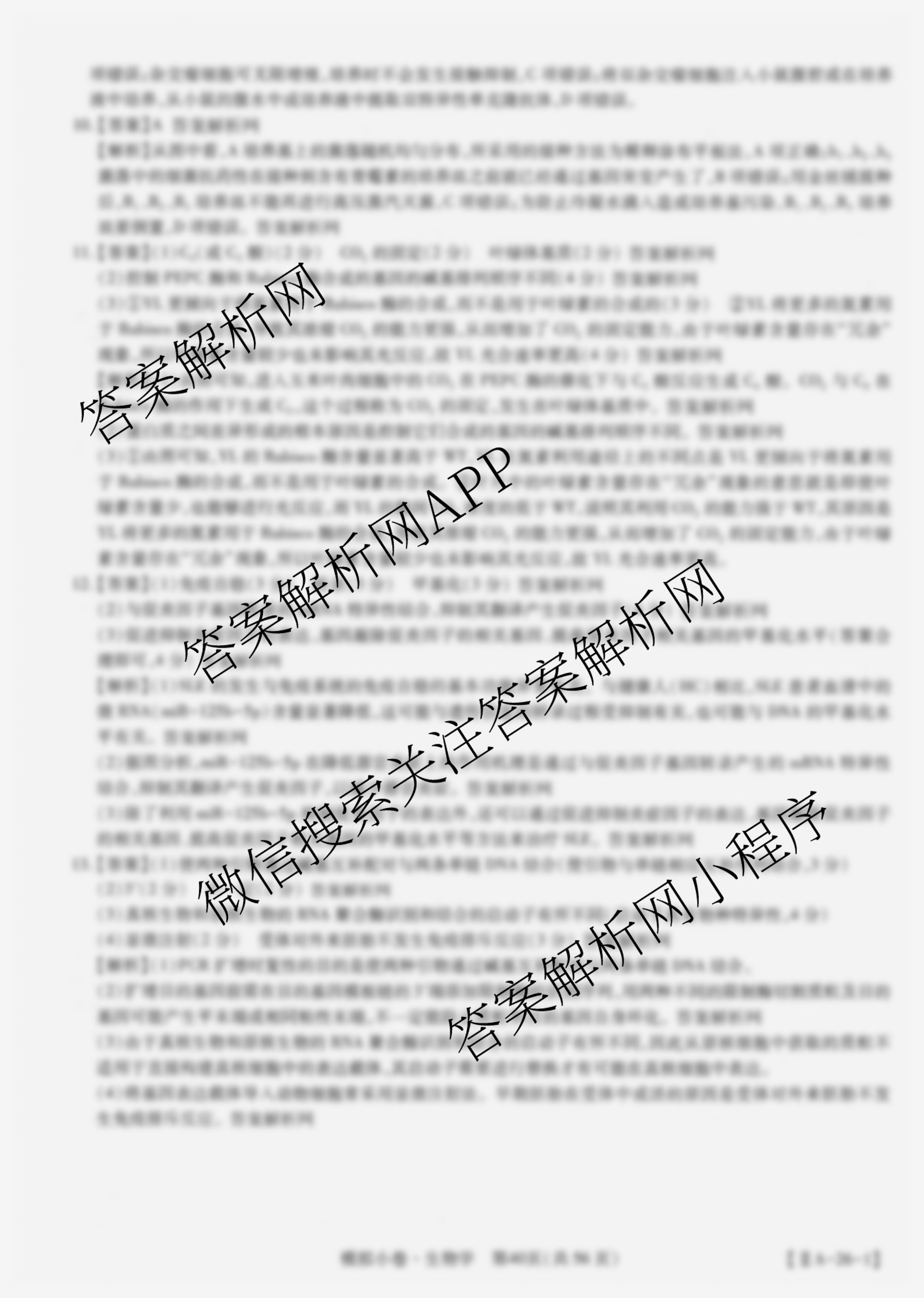 智慧上进2026届限时训练综合模拟小卷(十四)14生物(IIA)答案