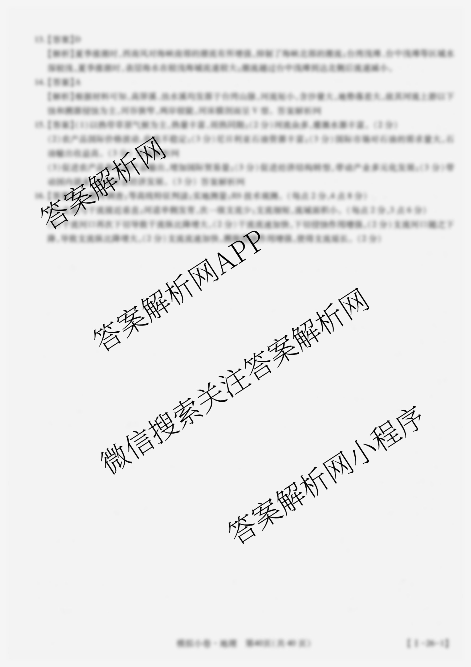 智慧上进2026届限时训练综合模拟小卷(二十)20地理(I)答案