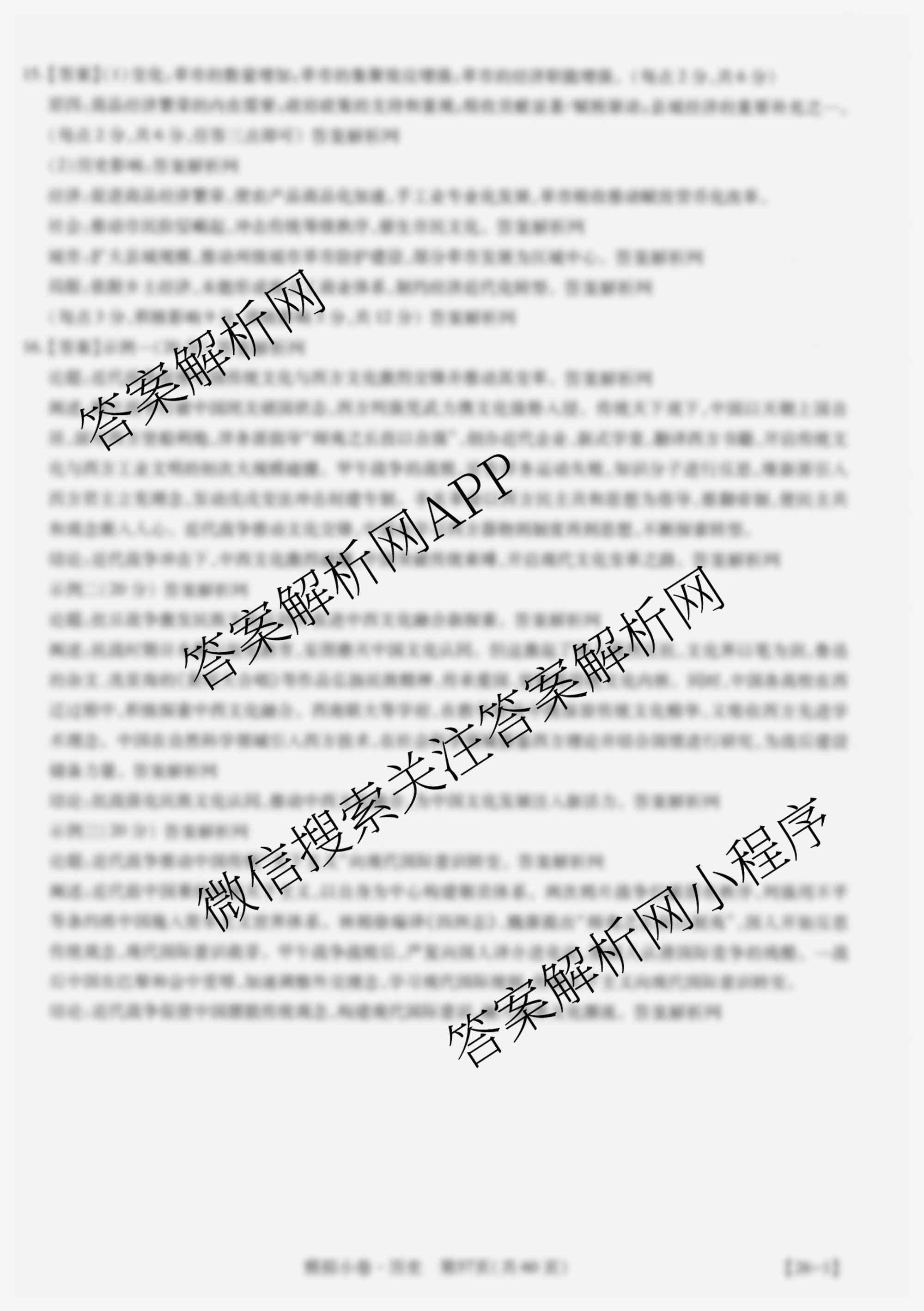 智慧上进2026届限时训练综合模拟小卷(十九)19历史答案