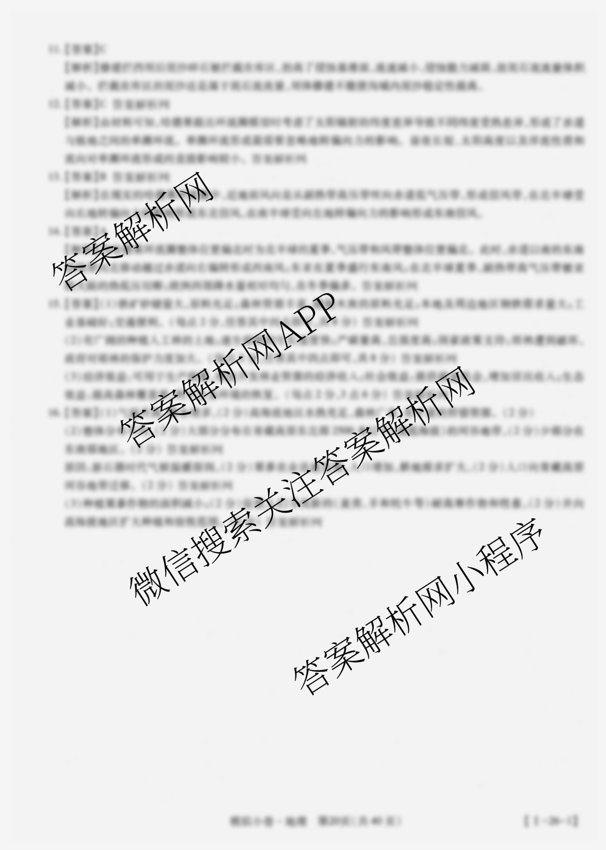 智慧上进2026届限时训练综合模拟小卷(十)10地理(I)答案