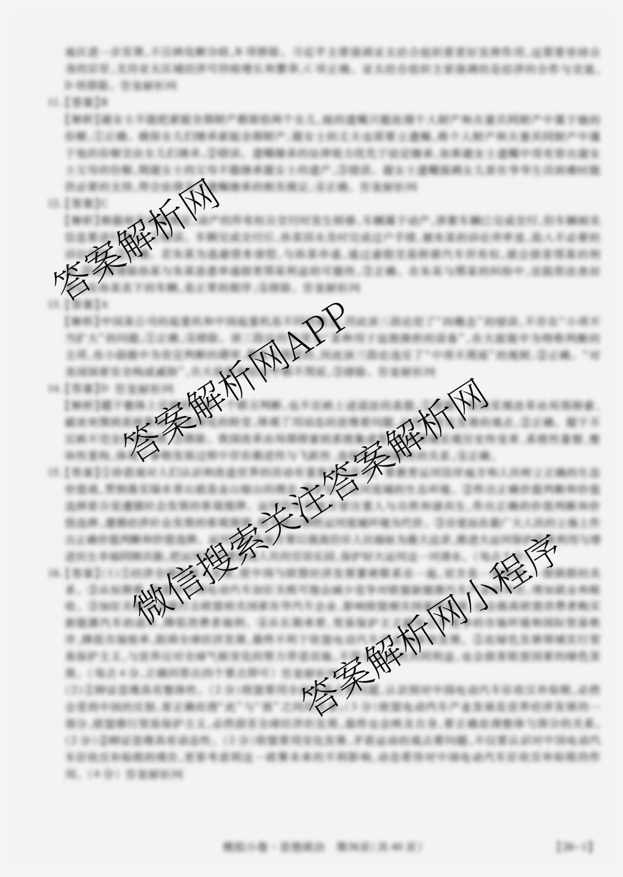 智慧上进2026届限时训练综合模拟小卷(十八)18政治答案