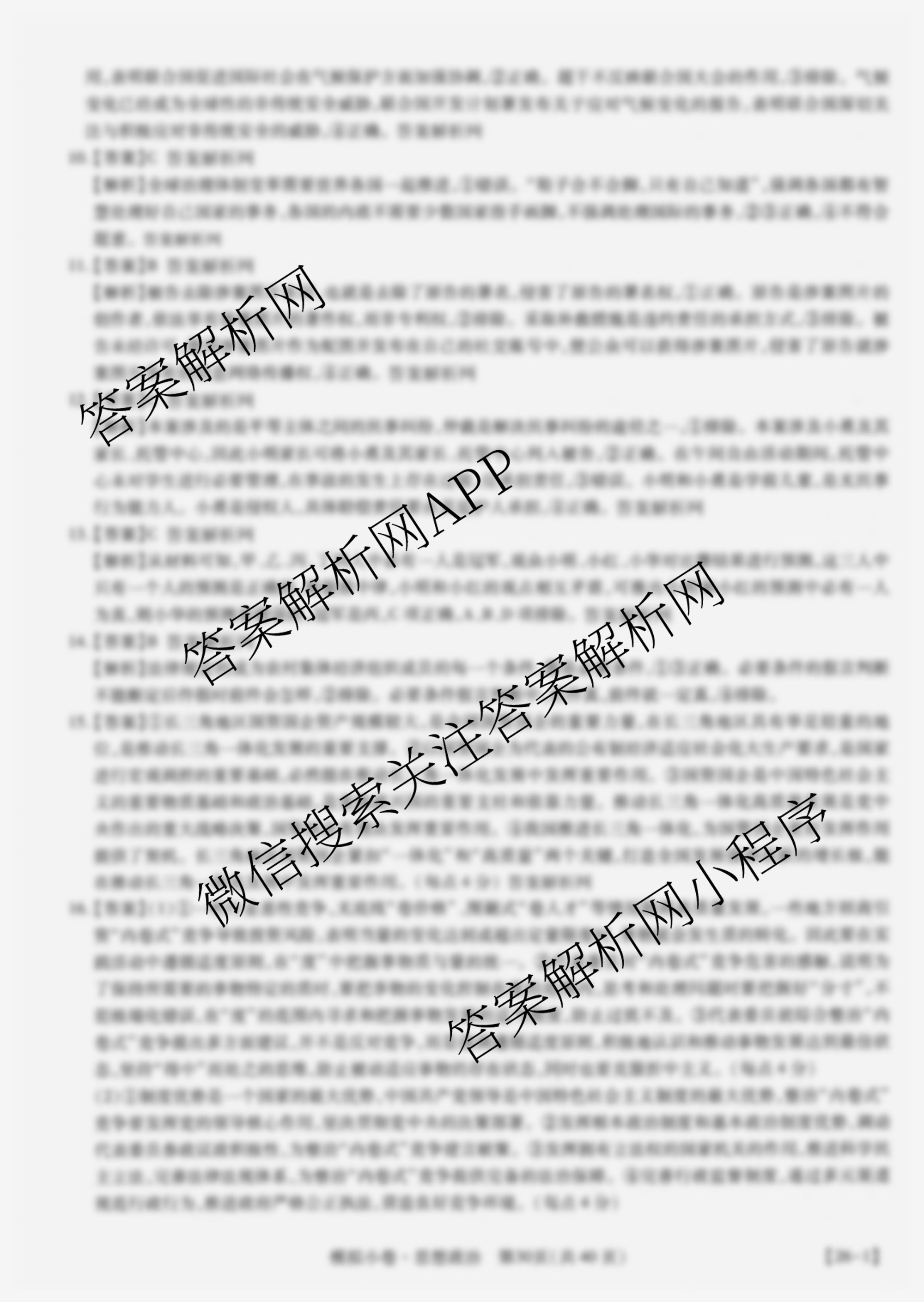 智慧上进2026届限时训练综合模拟小卷(十五)15政治答案