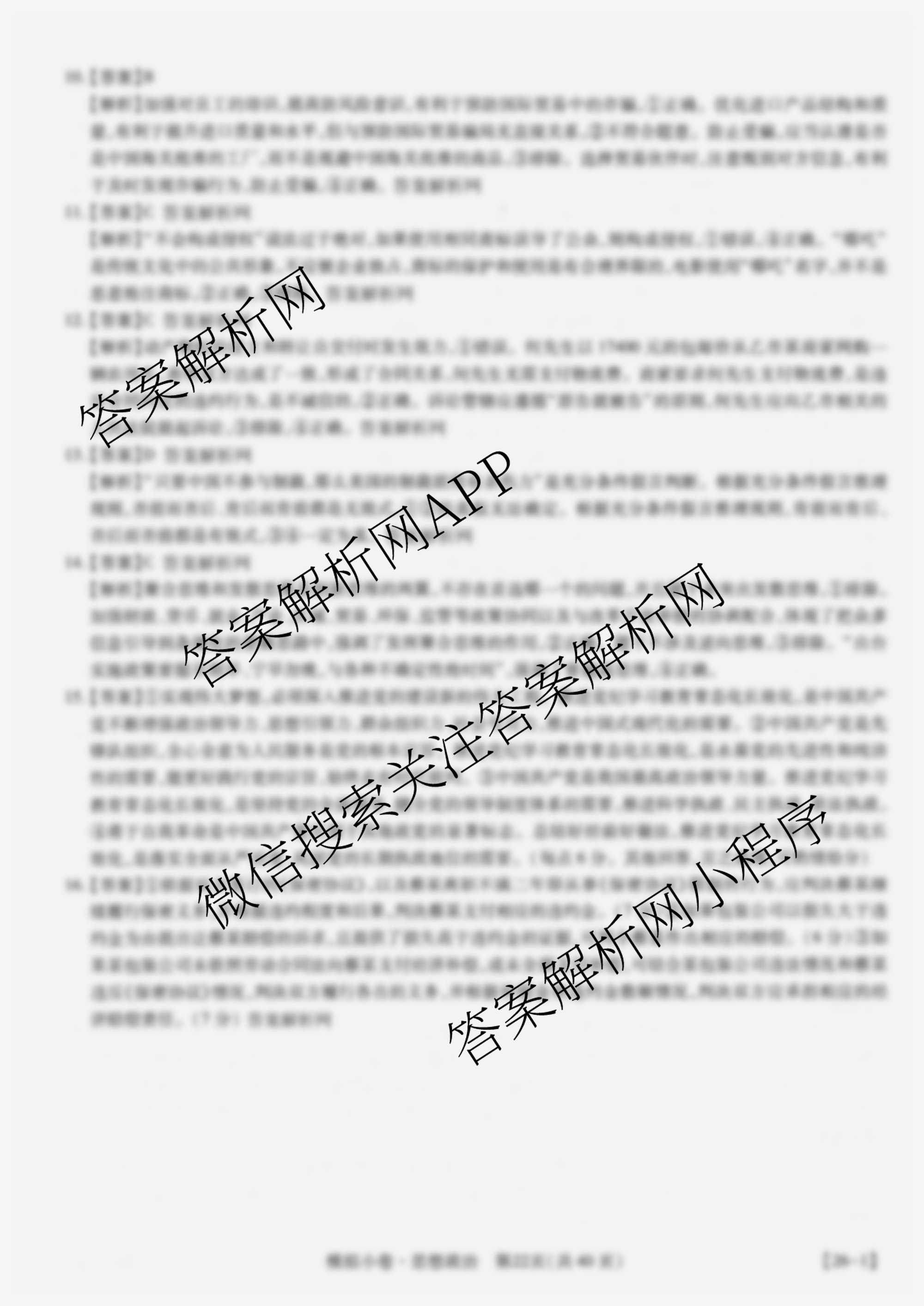 智慧上进2026届限时训练综合模拟小卷(十一)11政治答案