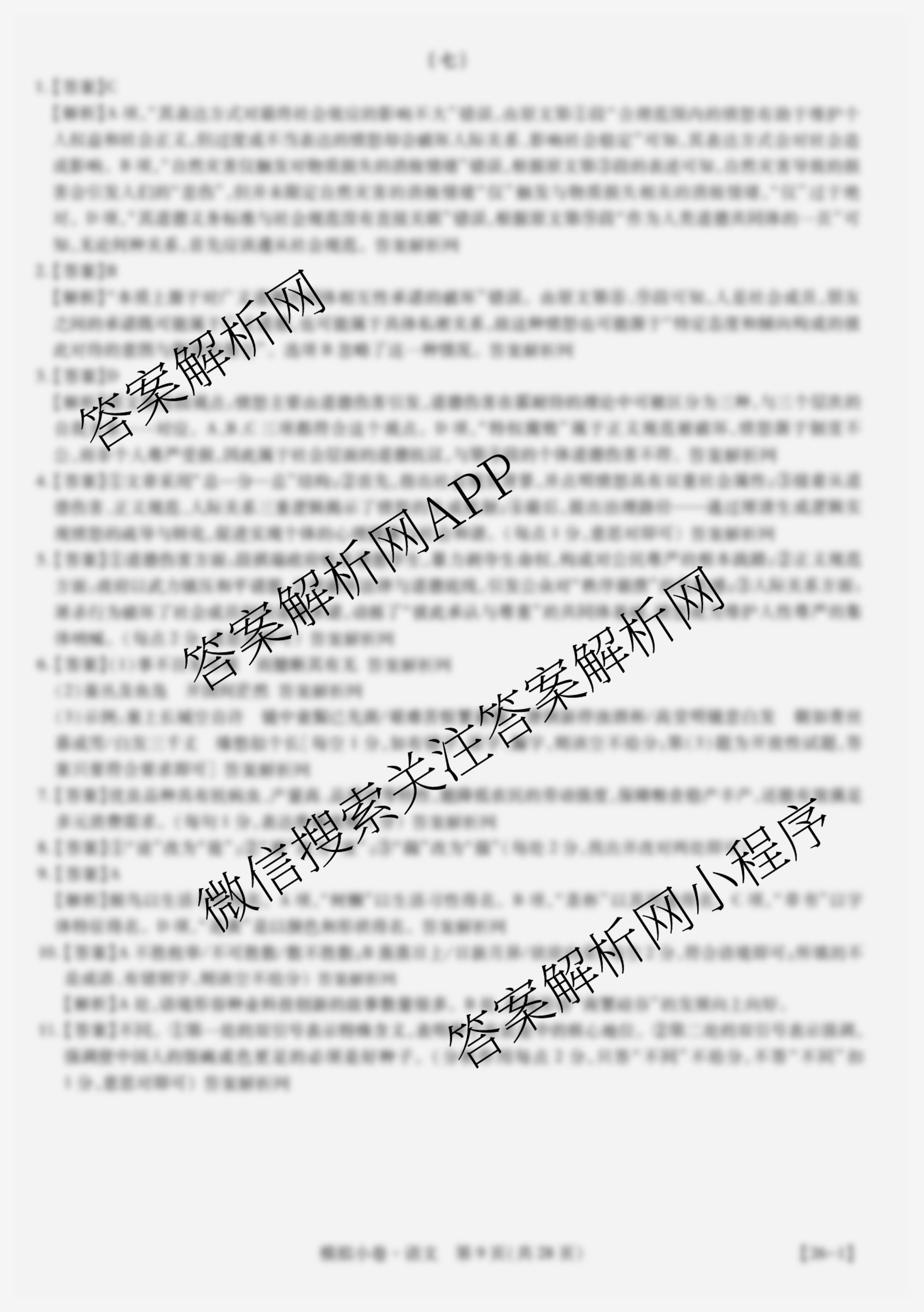 智慧上进2026届限时训练综合模拟小卷(七)7语文答案