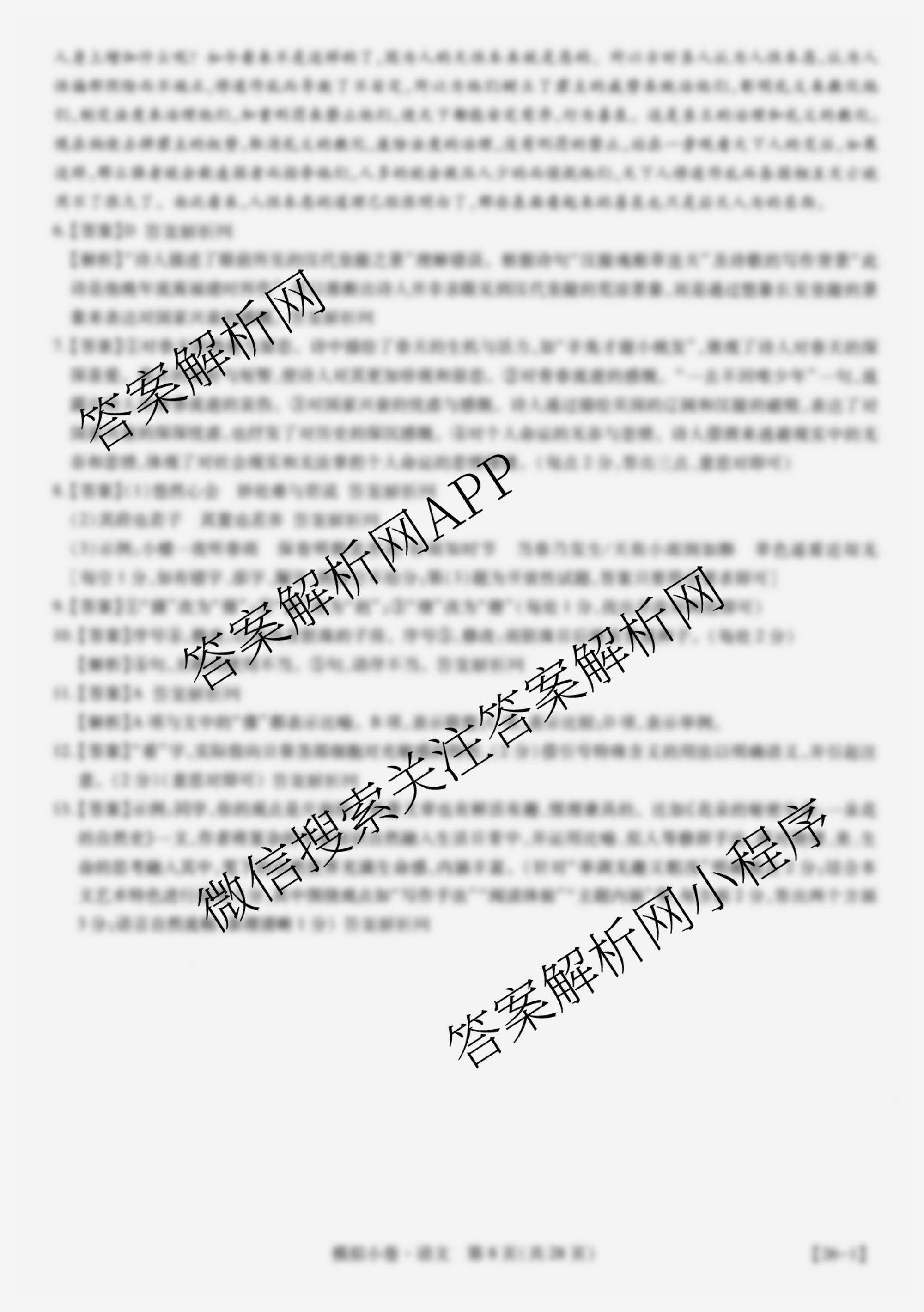 智慧上进2026届限时训练综合模拟小卷(六)6语文答案