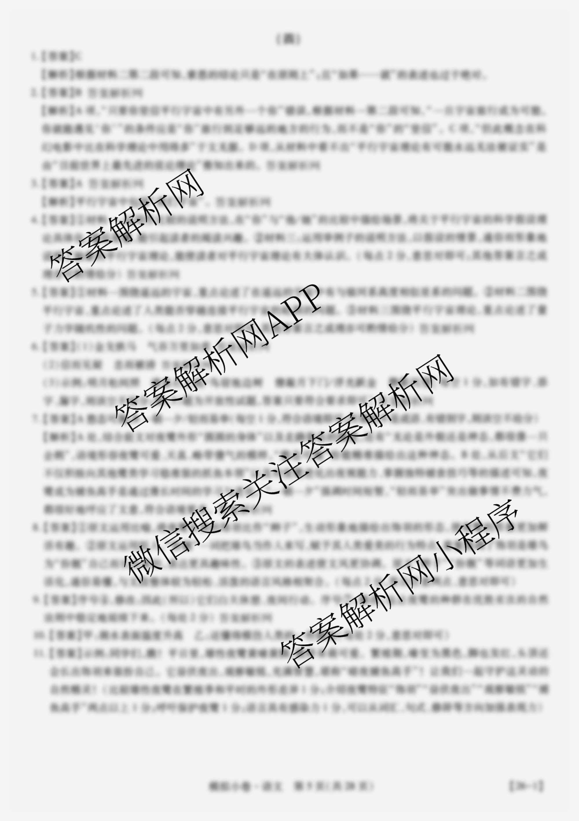 智慧上进2026届限时训练综合模拟小卷(四)4语文答案
