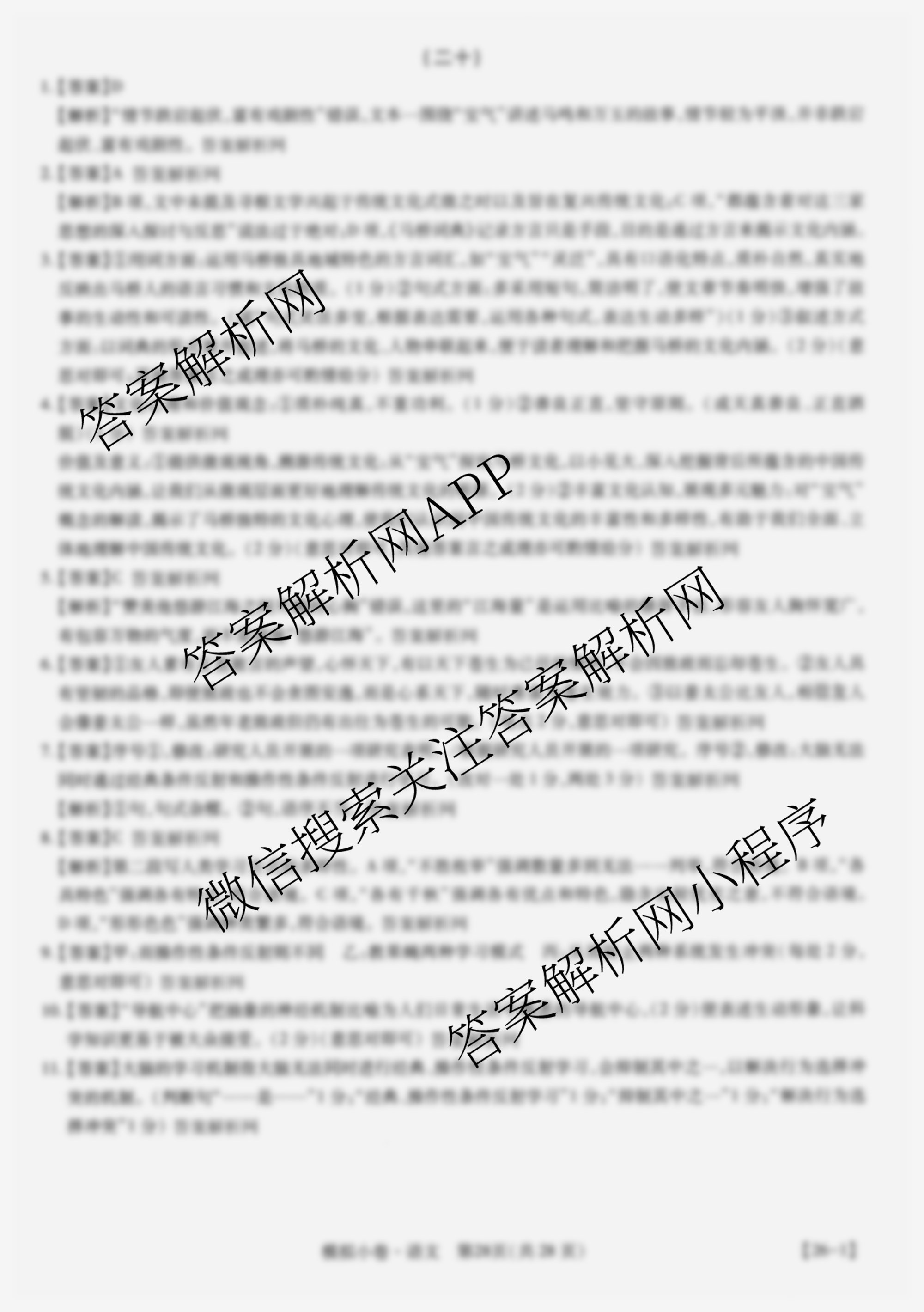 智慧上进2026届限时训练综合模拟小卷(二十)20语文答案