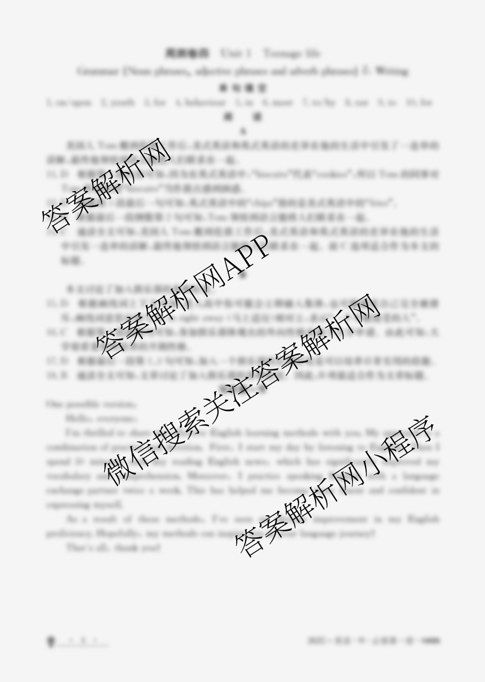 2026·卷行天下·周测卷·英语[26ZC·英语·R-必修第一册-HAIN](四)4答案,目前学英语报答案已经汇总了2026·卷行天下·周测卷·英语[26ZC·英语·R-必修第一册-HAIN](四)4答案的各科答案和试卷,获取更多金太阳100所名校答案解析,请在关注本站。