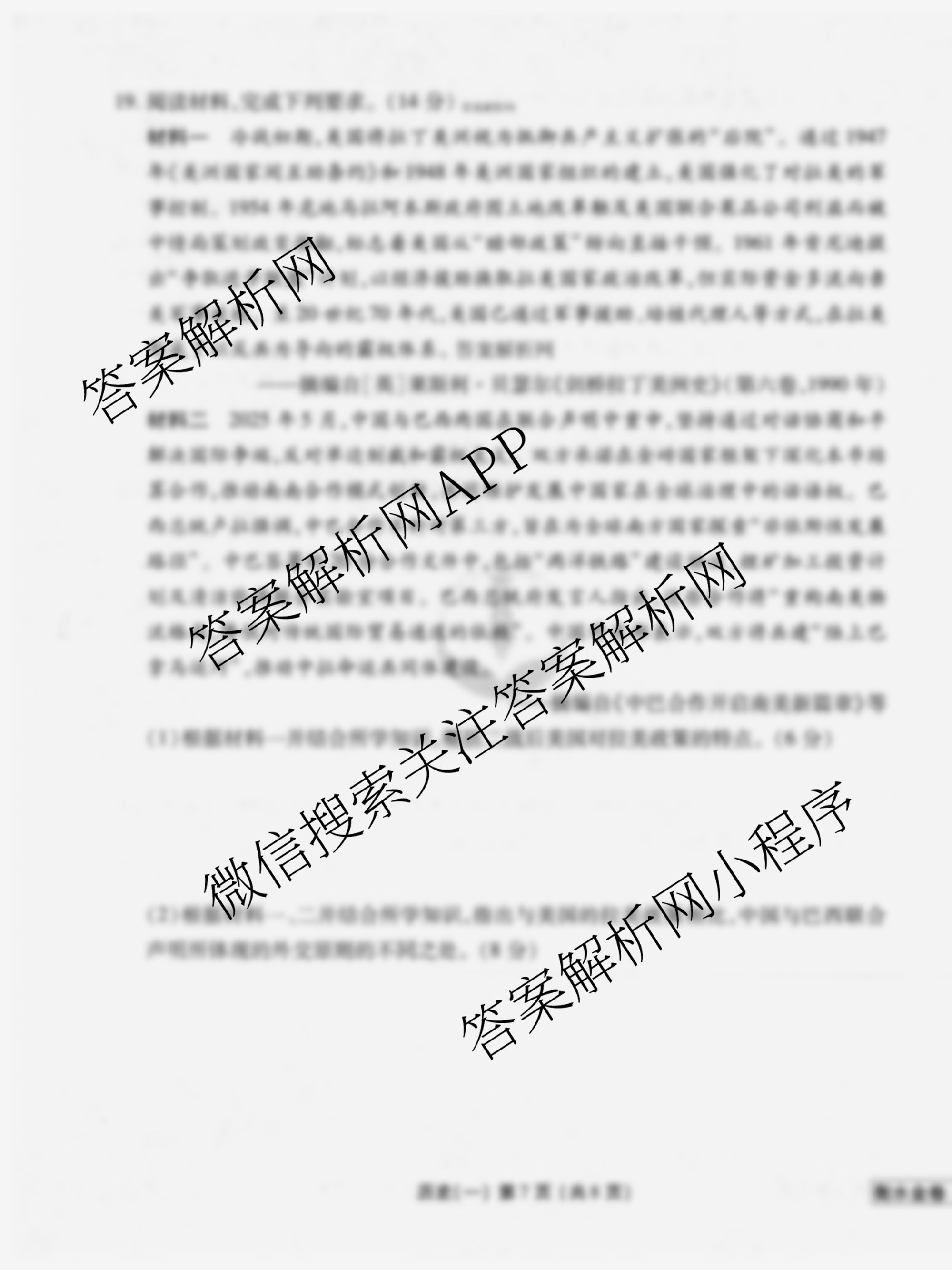 - [高三](衡水金卷先享题)·摸底卷2025~2026学年度一轮复习摸底测试卷(一)1历史(AH)答案